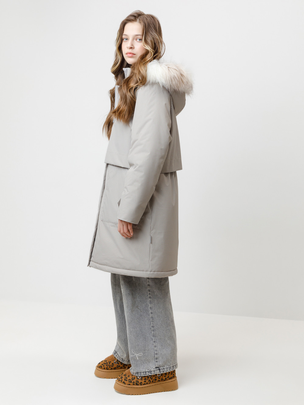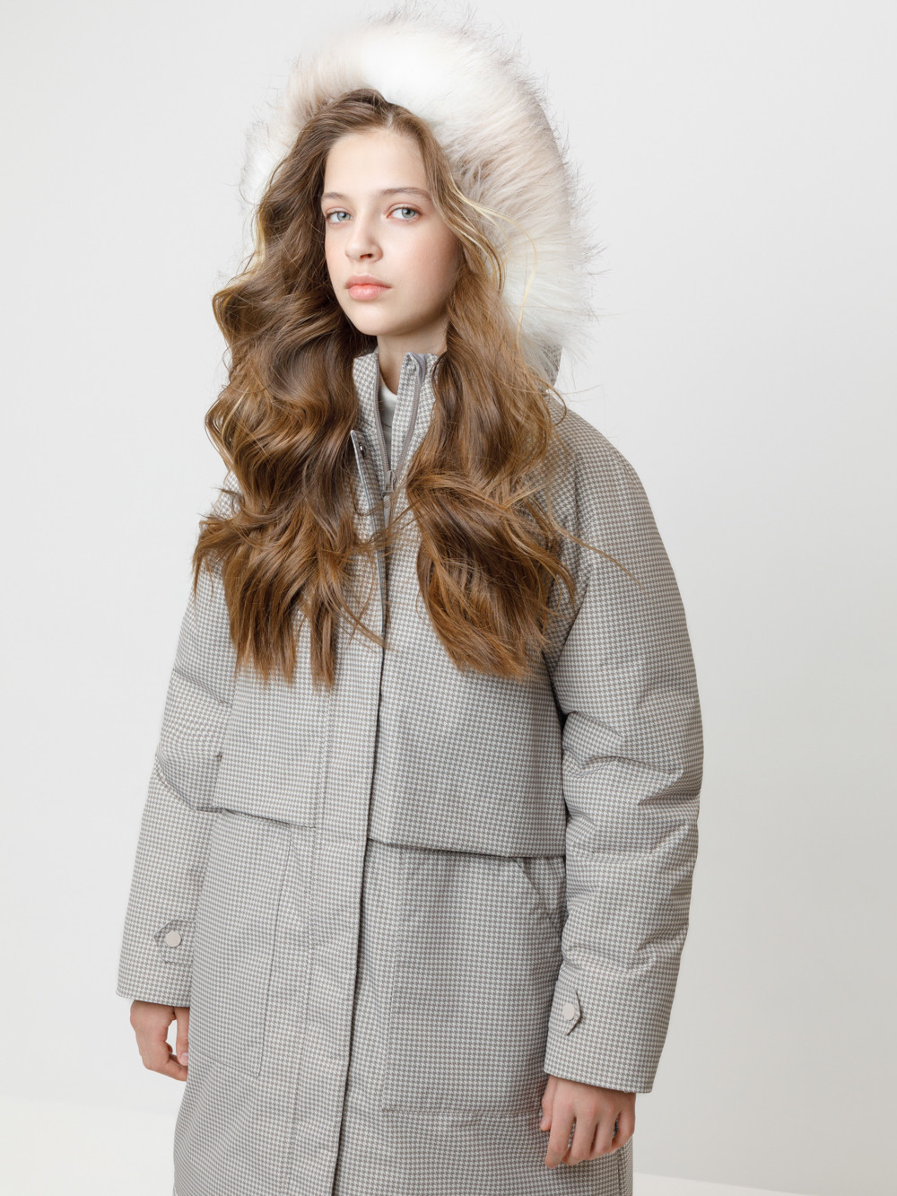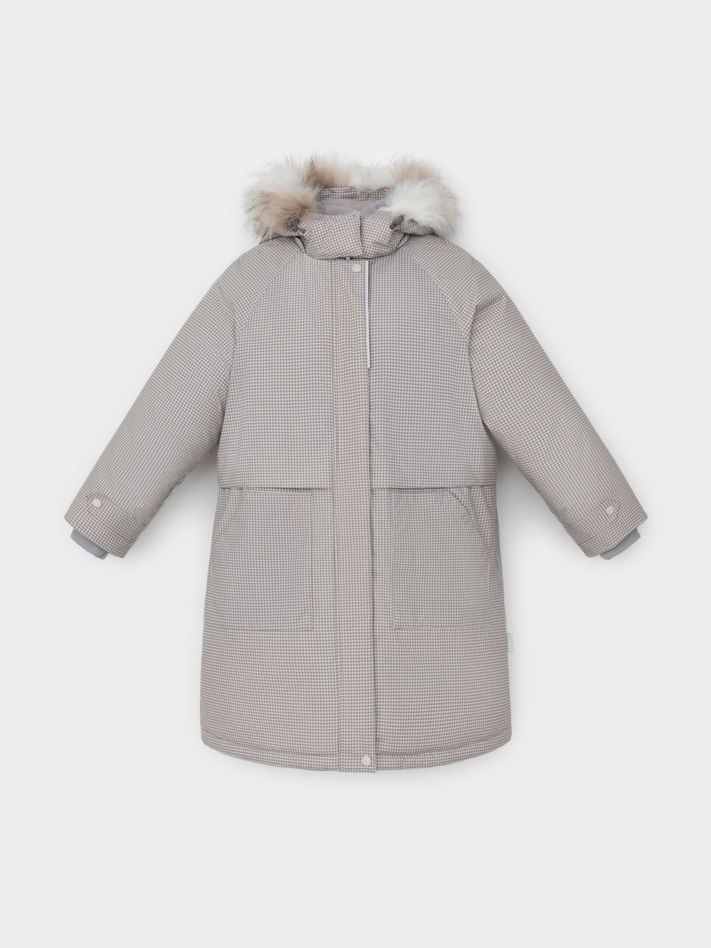 Зимняя удлинённая куртка для девочки с утеплителем SEE®: 250 г/м2. Выполнена из мембранной ткани с дополнительной тефлоновой обработкой, которая предохраняет изделие от загрязнений и отталкивает влагу. Подклад выполнен из 100% полиэстера Tricot. Куртка застёгивается на молнию, предусмотрена защита подбородка. Съёмный капюшон на кнопках и липучках имеет отстёгивающийся искусственный мех. На рукавах мягкие манжеты. По бокам два кармана с клапанами, внутри карман на молнии. По талии эластичная утяжка со стопперами для регулировки ширины пальто. Во всех изделиях верхнего ассортимента для безопасности ребёнка предусмотрены светоотражающие элементы.
