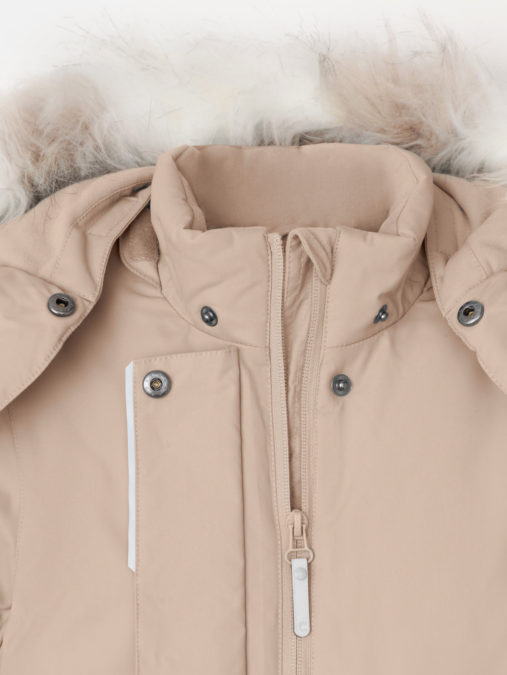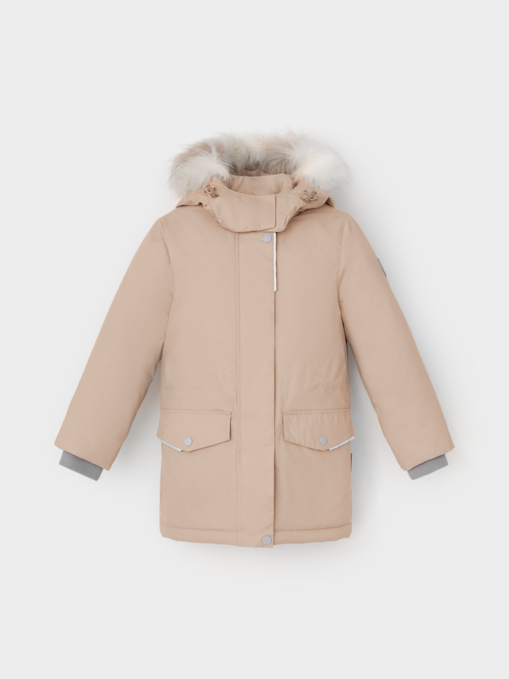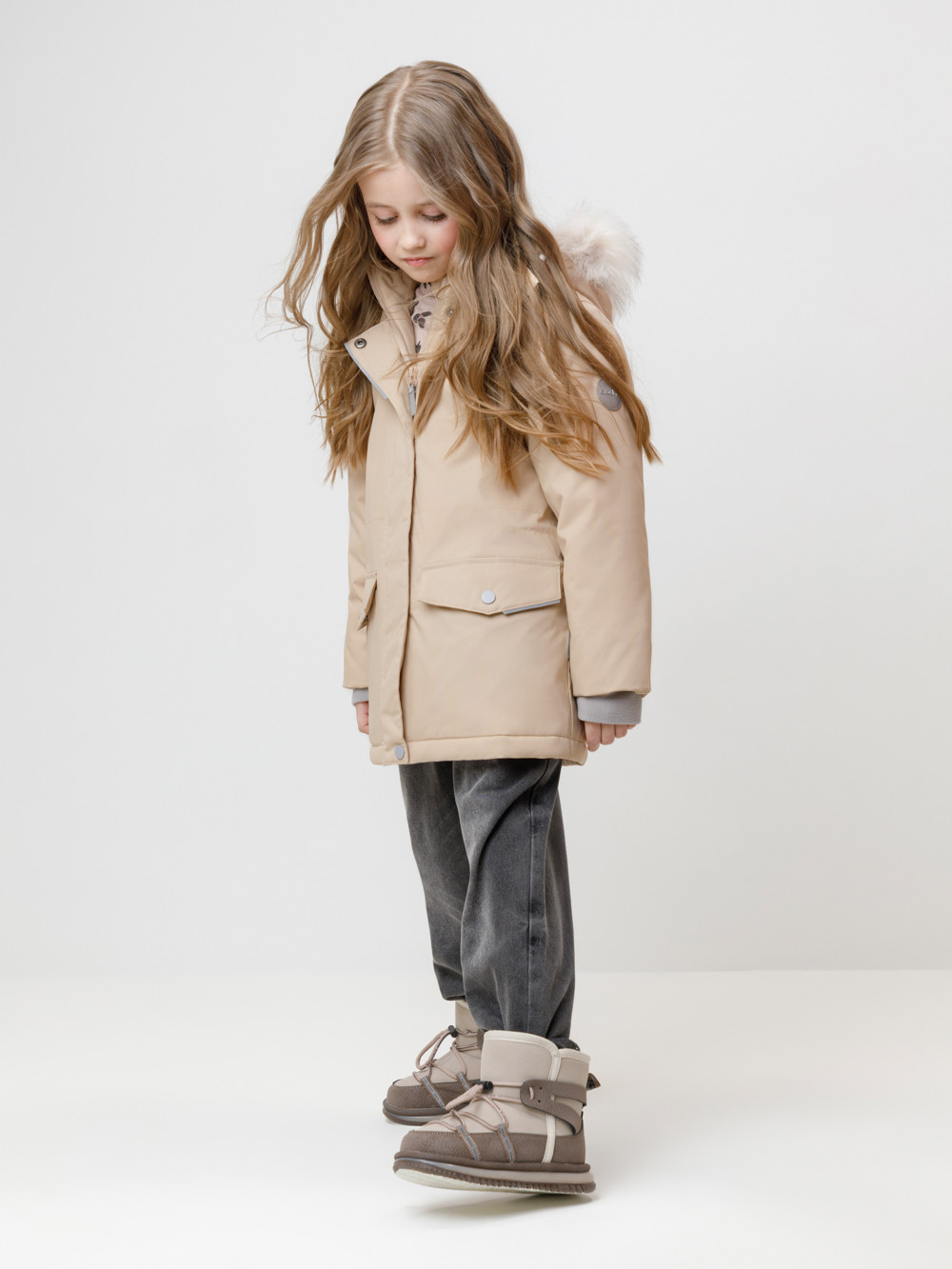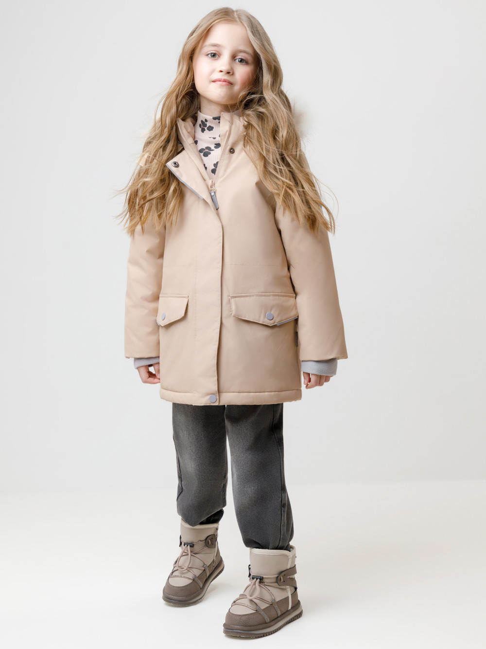 Зимняя куртка для девочки с утеплителем SEE®: 250 г/м2. Выполнена из мембранной ткани с дополнительной тефлоновой обработкой, которая предохраняет изделие от загрязнений и отталкивает влагу. Подклад выполнен из 100% полиэстера Tricot. Куртка застёгивается на молнию, предусмотрена защита подбородка. Съёмный капюшон на кнопках и липучках имеет отстёгивающийся искусственный мех на молнии и эластичную утяжку со стопперами. На рукавах мягкие внутренние манжеты. По бокам два кармана с клапанами на кнопках. Изнутри кулиска по талии для регулировки ширины куртки. Во всех изделиях верхнего ассортимента для безопасности ребёнка предусмотрены светоотражающие элементы.