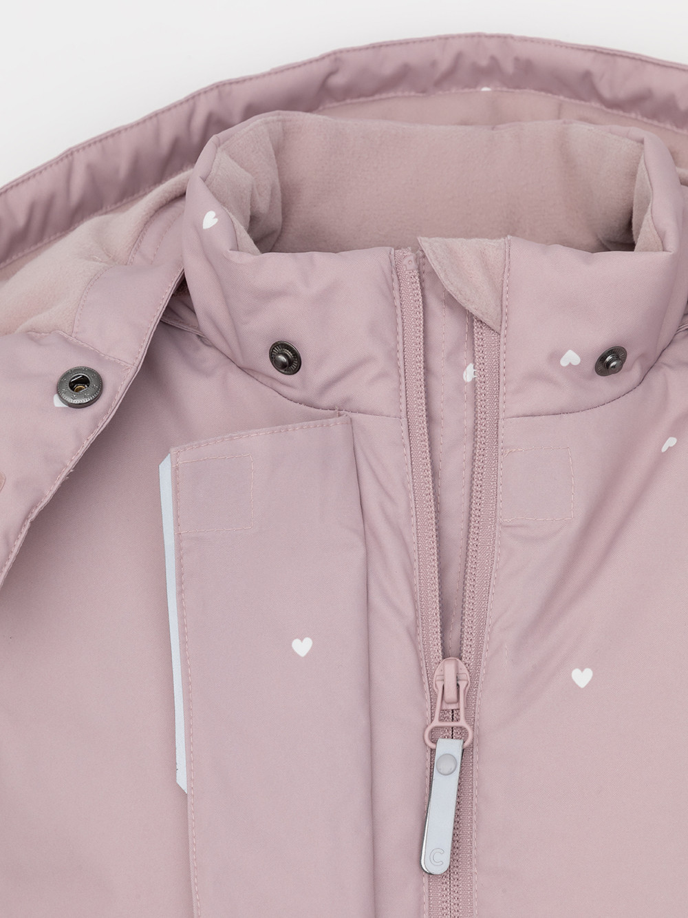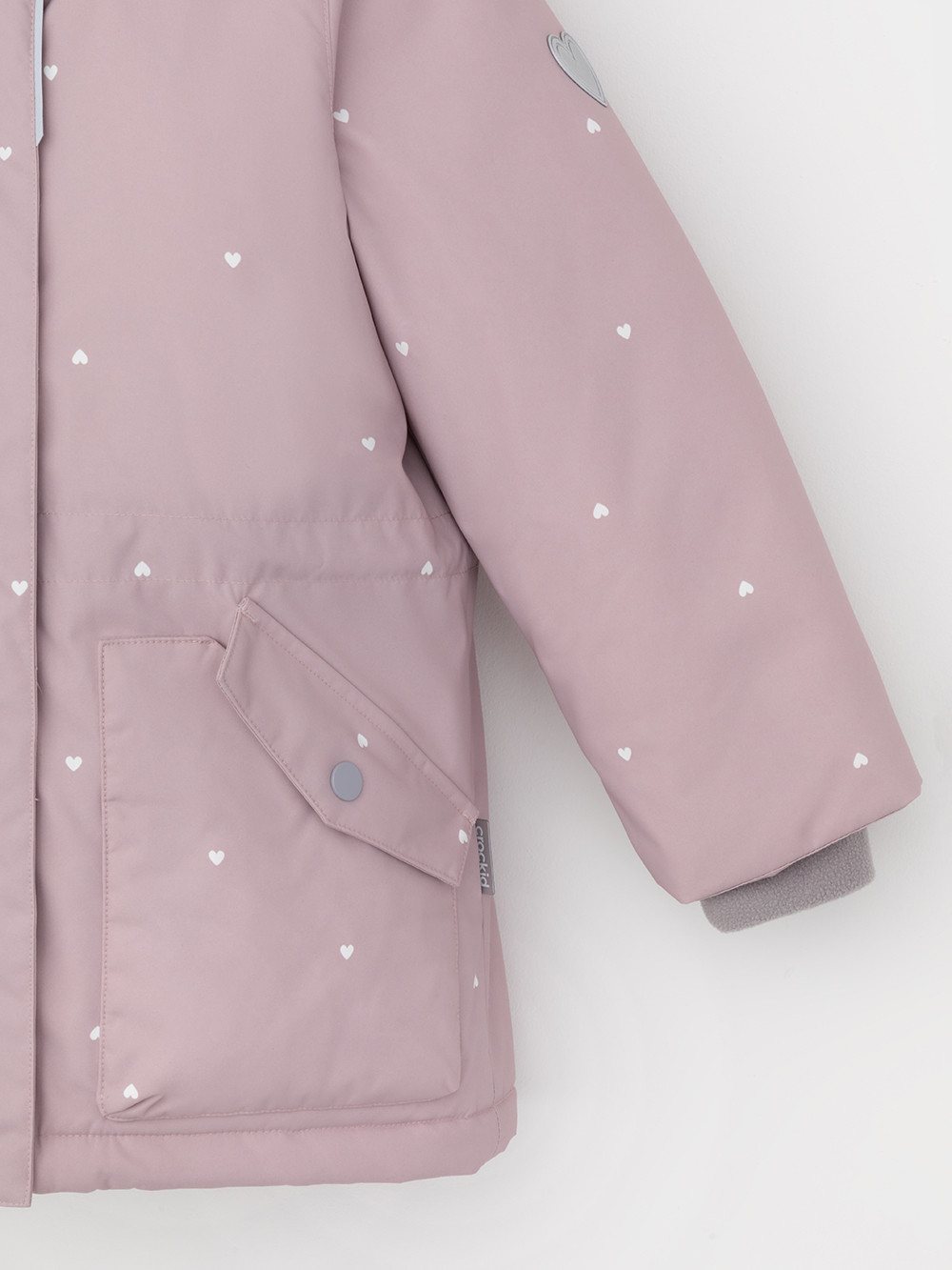 Зимняя куртка для девочки с утеплителем SEE®: 300 г/м2. Выполнена из мембранной ткани с дополнительной тефлоновой обработкой, которая предохраняет изделие от загрязнений и отталкивает влагу. Подклад выполнен из 100% полиэстера Tricot. Куртка застёгивается на молнию, предусмотрена защита подбородка. Съёмный капюшон на кнопках и липучках имеет эластичную утяжку со стопперами. На рукавах мягкие внутренние манжеты. По бокам два кармана с клапанами на кнопках. Изнутри кулиска по талии для регулировки ширины куртки. Во всех изделиях верхнего ассортимента для безопасности ребёнка предусмотрены светоотражающие элементы.