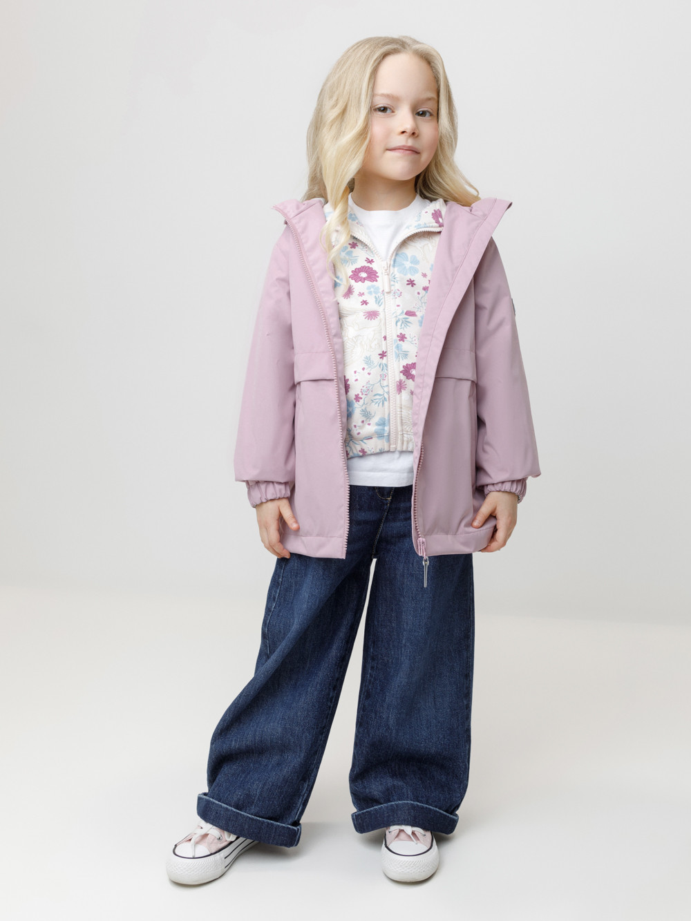 Ветровка для девочки из мембранной ткани с дополнительной тефлоновой обработкой. Верхняя мембранная ткань 1000/1000 с тефлоновым покрытием отталкивает воду и грязь и обладает «дышащими» свойствами. Подкладка выполнена из флиса. У изделия предусмотрена защита подбородка. Несъёмный капюшон регулируется с помощью эластичного шнура со стопперами. Низ рукавов имеет эластичную резинку для лучшего прилегания. Во всех изделиях верхнего ассортимента для безопасности ребёнка предусмотрены светоотражающие элементы.