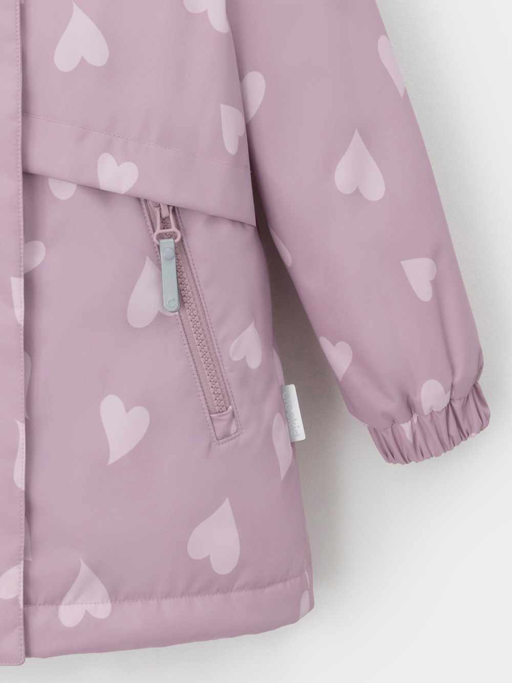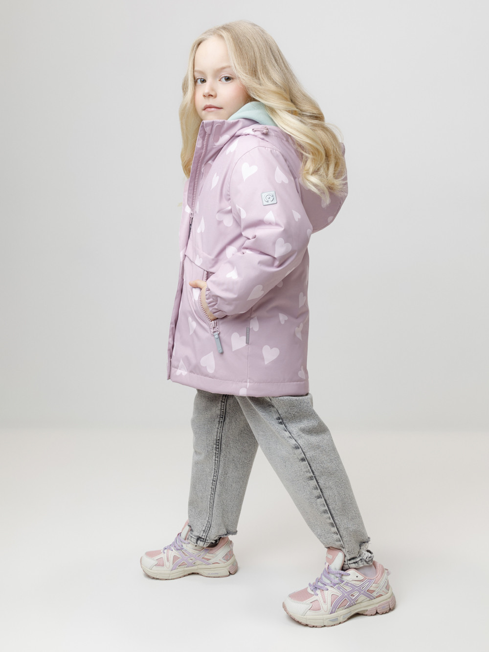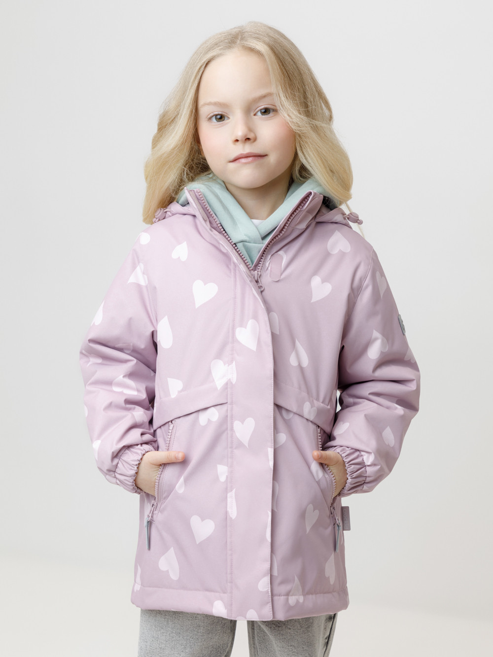 Демисезонная куртка для девочки с утеплителем Fellex®: 120 г/м2. Выполнена из мембранной ткани с тефлоновой обработкой. Данный вид обработки предохраняет изделие от загрязнения и хорошо отталкивает влагу. Подклад из 100% полиэстера. Куртка застёгивается на молнию и дополнительно защищена внешней ветрозащитной планкой на липучках. Предусмотрена защита подбородка. Несъёмный капюшон имеет эластичную утяжку со стопперами. Низ рукавов на эластичной резинке для лучшего прилегания. По бокам два кармана. Во всех изделиях верхнего ассортимента для безопасности ребёнка предусмотрены светоотражающие элементы.