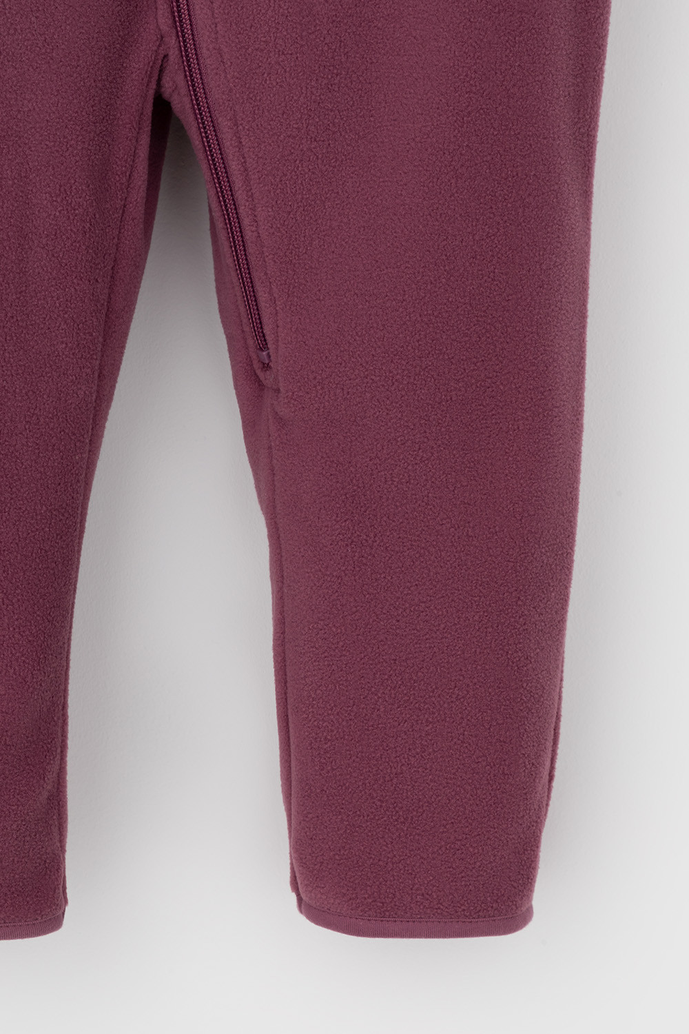 Флисовый комбинезон со съёмным капюшоном для девочки. У изделия высокий воротник и съёмный капюшон на кнопках. Застёгивается на удлинённую молнию. Предусмотрена защита шеи и подбородка. В размерах 40/62 - 48/74 на рукавах и штанинах есть удобные отвороты. Комбинезон сохраняет цвет и форму после многократных стирок.