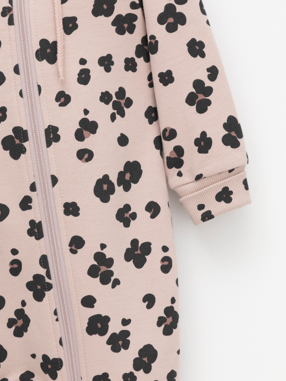 Тёплый комбинезон с капюшоном для девочки. Изготовлен из высококачественного футера с начёсом. Застёгивается на молнию. Манжеты и пояс выполнены из эластичного полотна. Изделие сохраняет цвет и форму после многократных стирок. Все трикотажные полотна производятся в соответствии с нормами швейцарского сертификата ЭкоТекс.
