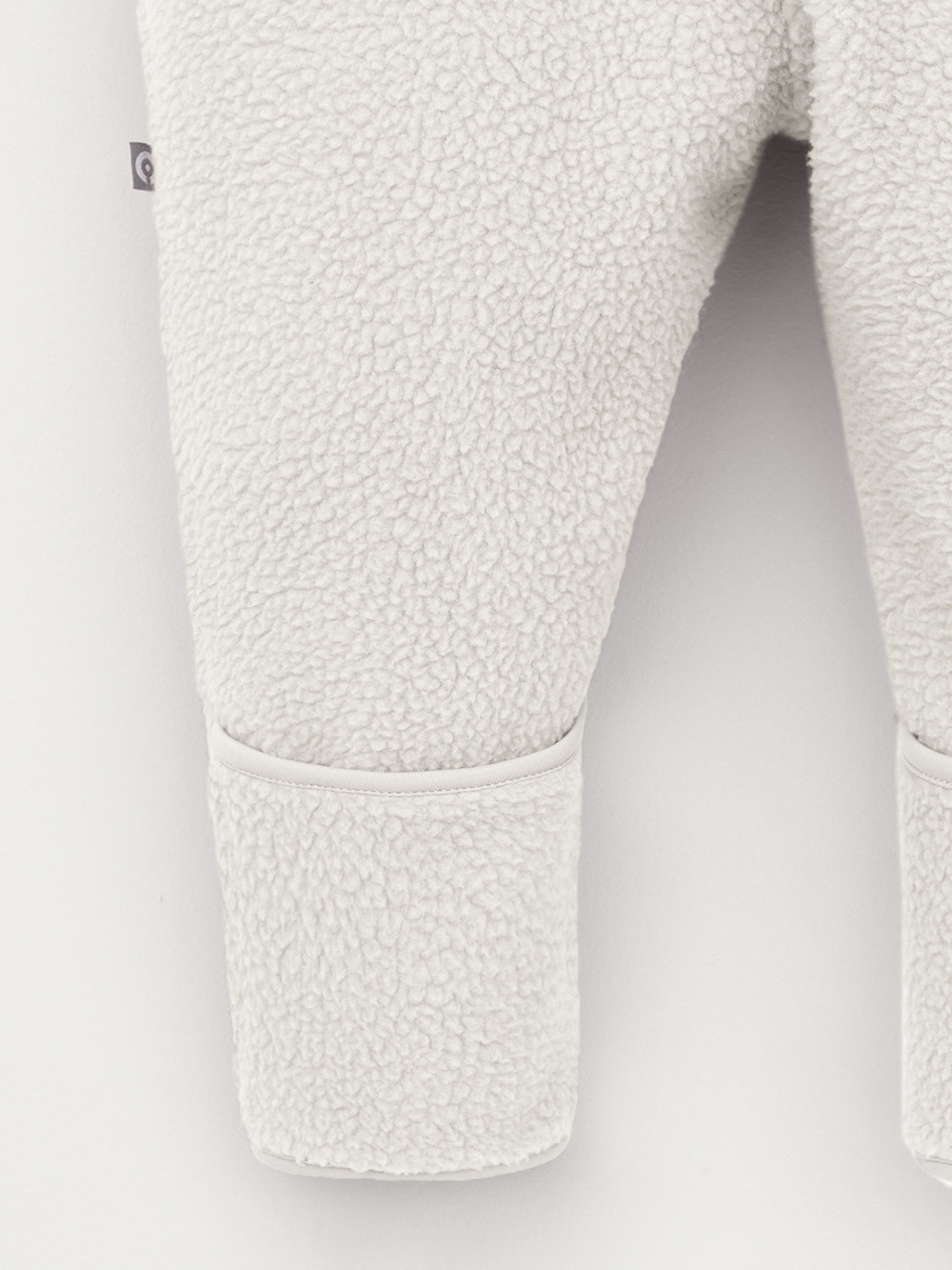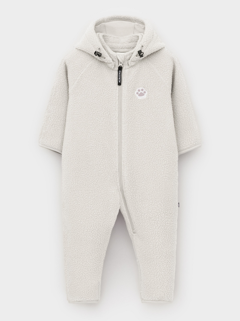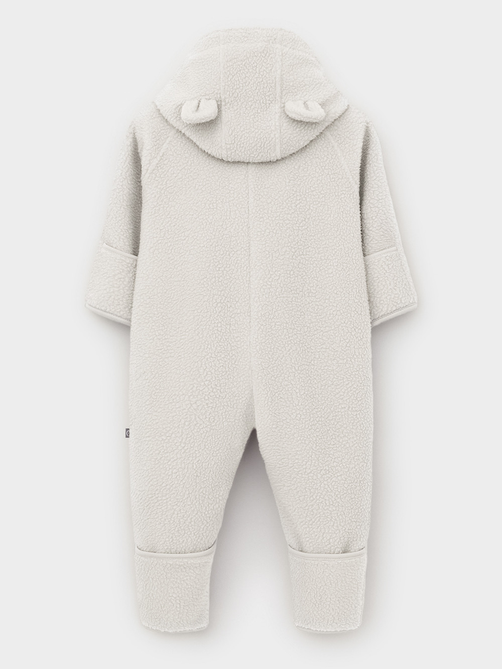 Флисовый комбинезон для наворождённых со съёмным капюшоном. Капюшон регулируется по ширине с помощью эластичной утяжки со стопперами. Подклад выполнен из гладкого трикотажа супрем, произведённого из высококачественного натурального хлопка. Застёгивается на удлинённую молнию с мягкой защитой шеи и подбородка. В размерах 80 и 86 на рукавах и ножках отворотов нет. Украшен декоративными ушками и нашивкой. Комбинезон сохраняет цвет и форму после многократных стирок.