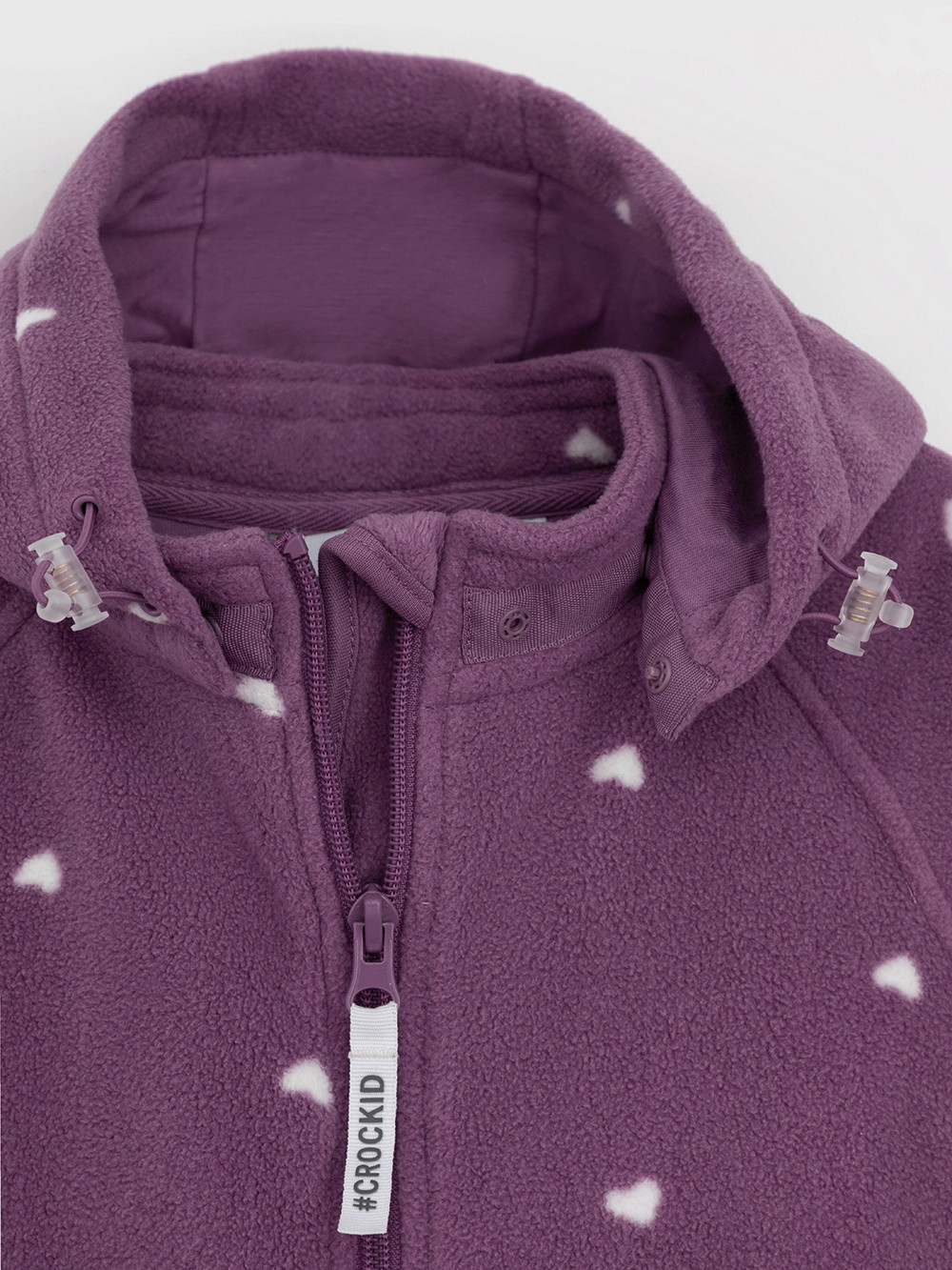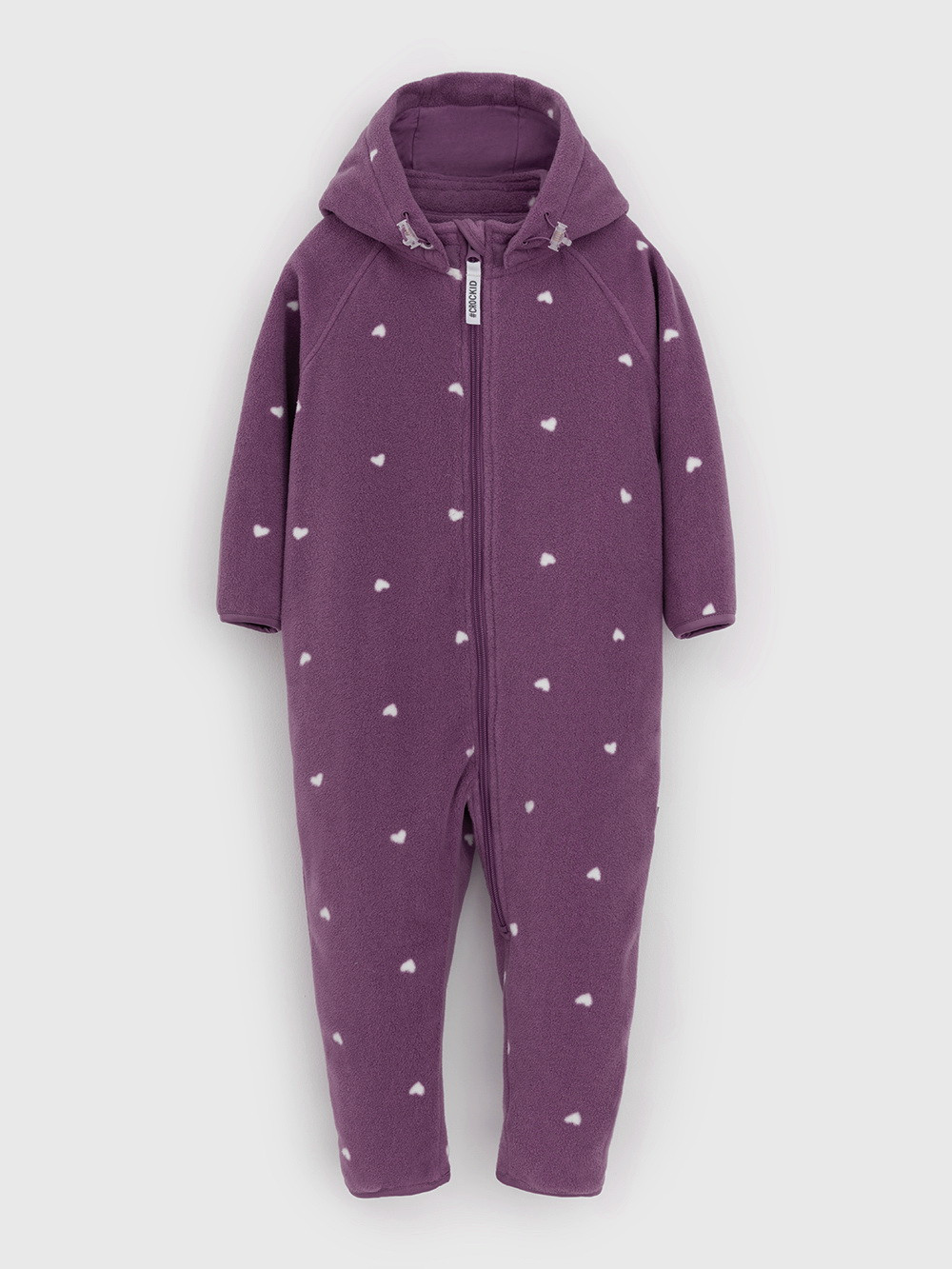 Флисовый комбинезон для девочки со съёмным капюшоном. Капюшон регулируется по ширине с помощью эластичной утяжки со стопперами. Подклад выполнен из гладкого трикотажа супрем, произведённого из высококачественного натурального хлопка. Застёгивается на удлинённую молнию с мягкой защитой шеи и подбородка. В размерах 62, 68 и 74 на рукавах и ножках есть отвороты. Оригинальная набивка выполнена из стойких, гипоаллергенных текстильных красителей. Комбинезон сохраняет цвет и форму после многократных стирок.
