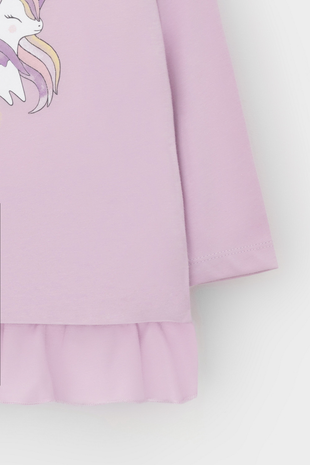Туника для девочки из высококачественного трикотажного полотна. Оригинальный принт выполнен из стойких текстильных гипоаллергенных красителей. Для удобства одевания на спинке есть застежка на кнопки.