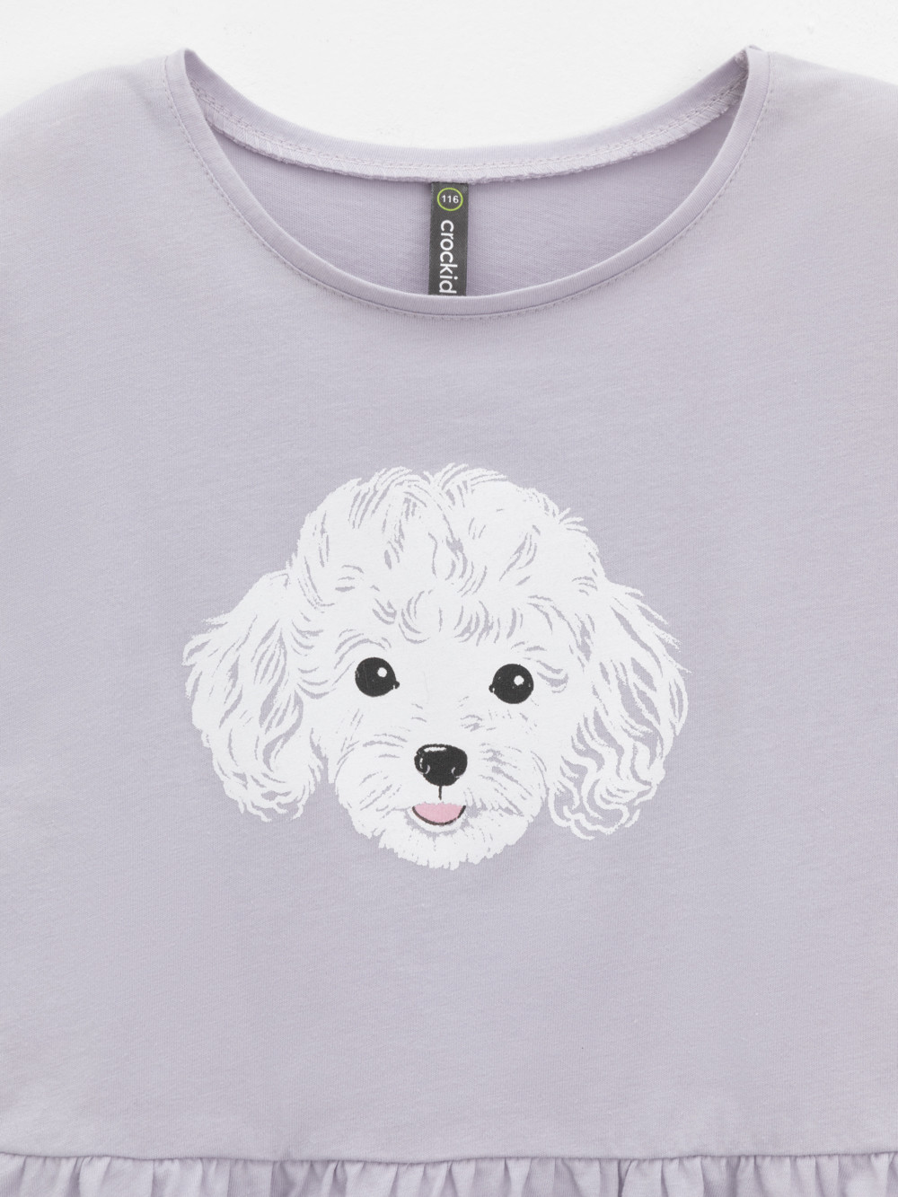 Туника для девочки с короткими рукавами из гладкого трикотажа супрем. Для удобства одевания на плече застёгивается на кнопки в размерах 92 и 98. Туника сохраняет форму и стойкий цвет после многочисленных стирок и идеально подходит на каждый день. Оригинальный принт выполнен из стойких текстильных гипоаллергенных красителей. Все трикотажные полотна производятся в соответствии с нормами швейцарского сертификата ЭкоТекс.