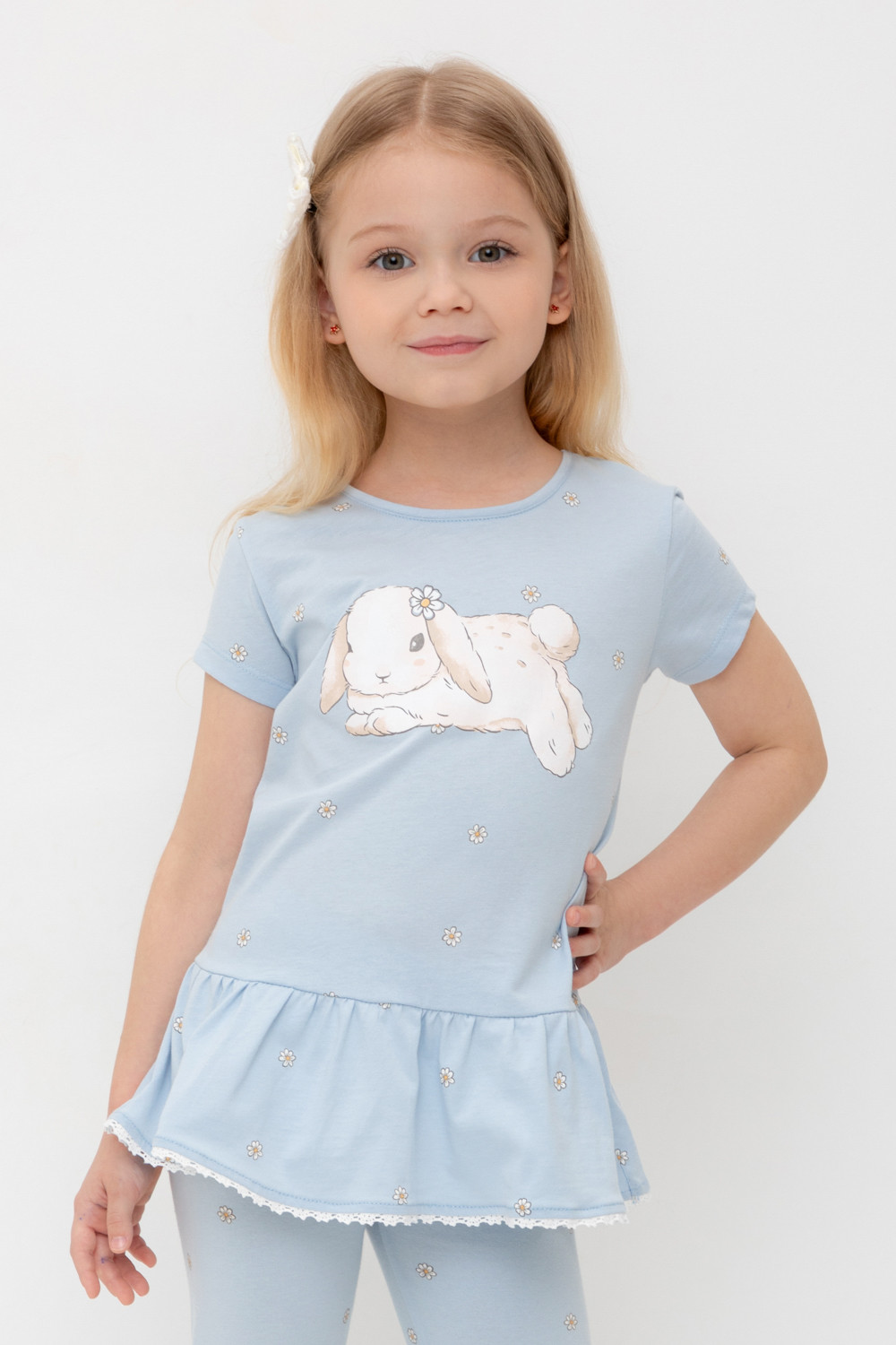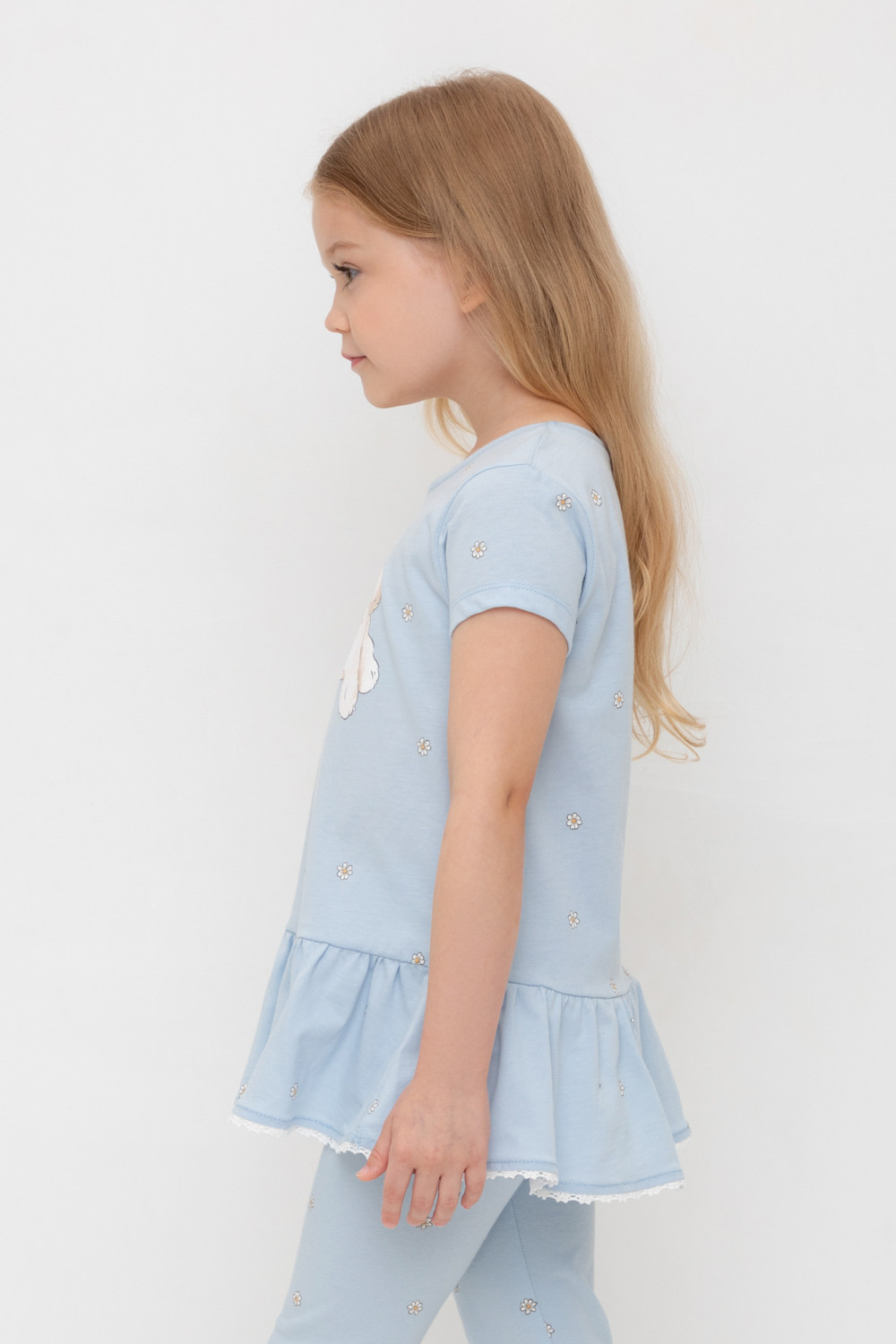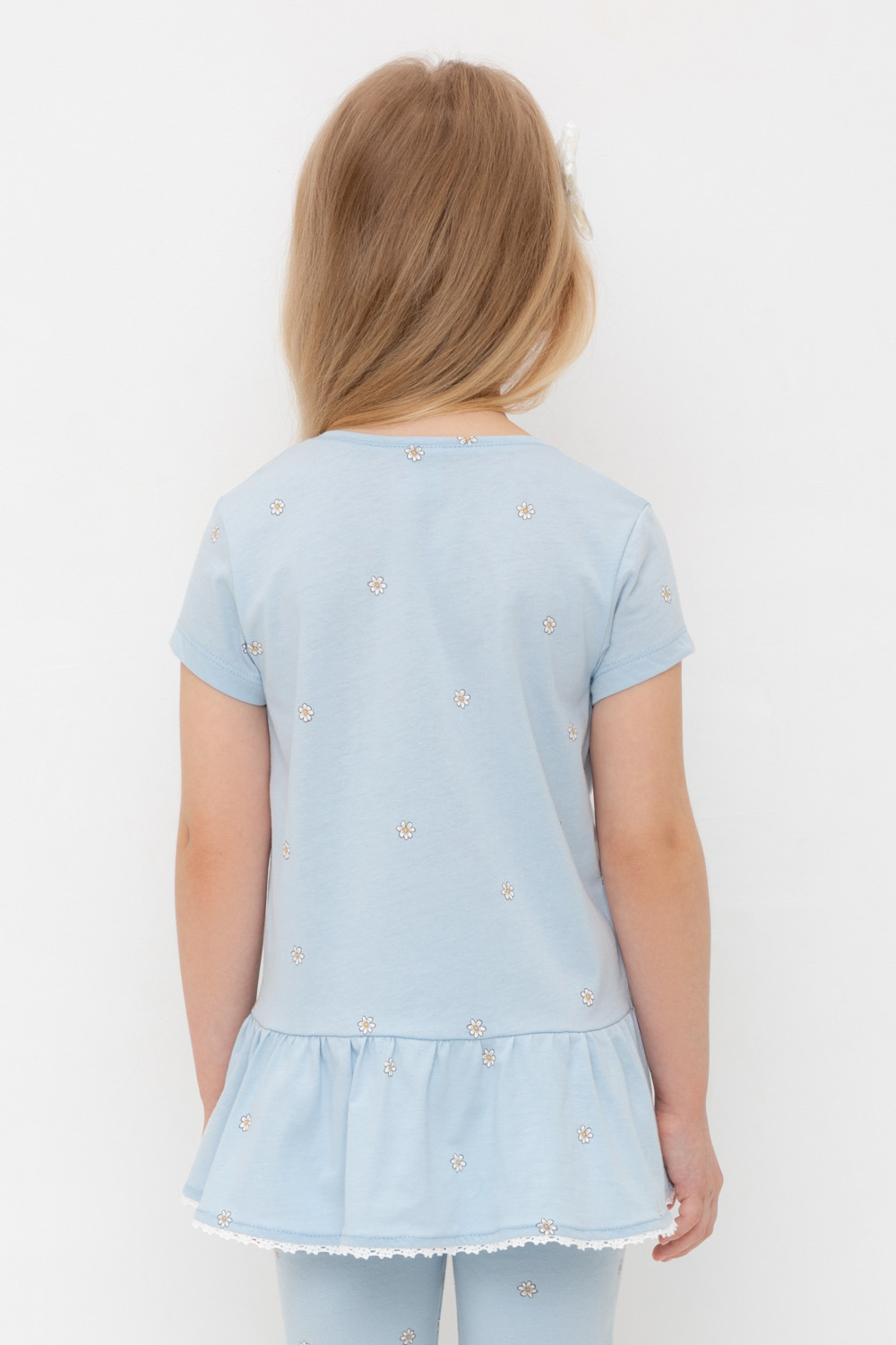 Легкая трикотажная туника для девочки из высококачественного хлопка. По низу украшена кружевом. Застёжка на плече в размерах 92 и 98. Оригинальная набивка и принт выполнены из стойких текстильных гипоаллергенных красителей. Изделие сохраняет цвет и форму после многократных стирок.