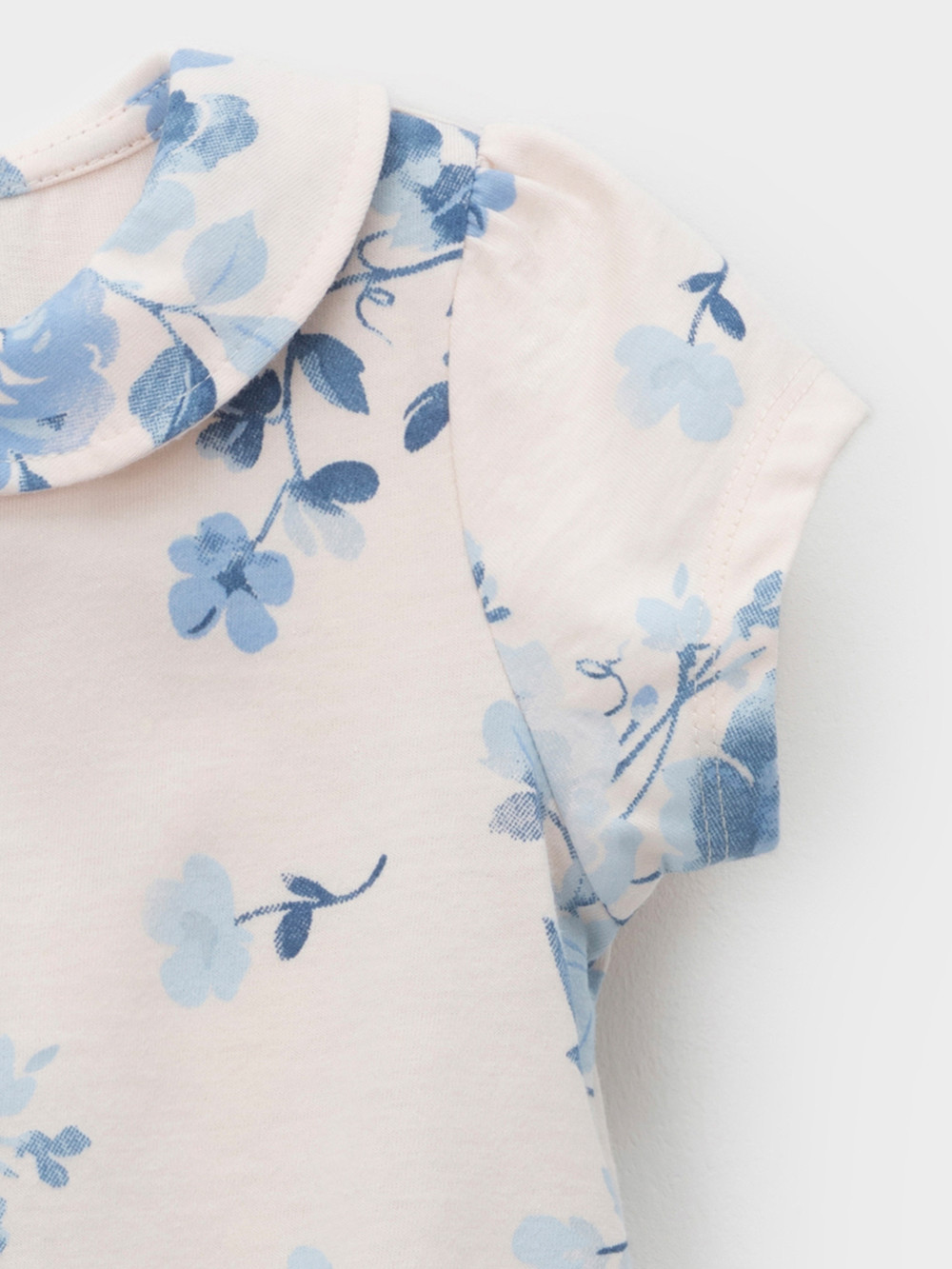 Боди для девочки с воротничком. Изготовлено из высококачественного трикотажного полотна. Застёгивается на кнопки спереди и снизу. Изделие сохраняет цвет и форму после многократных стирок. Все трикотажные полотна производятся в соответствии с нормами швейцарского сертификата ЭкоТекс.