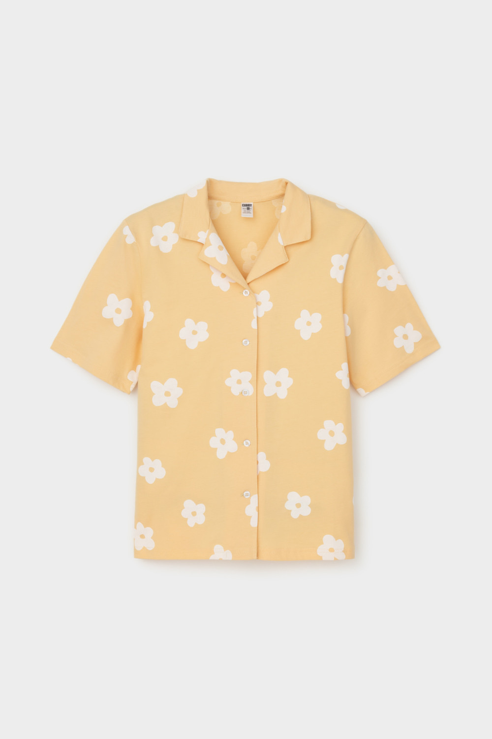 Трикотажный пижамный комплект из натурального хлопка. В комплекте рубашка с короткими рукавами и застежкой на пуговицы. Прямые брюки с удобным поясом на резинке. Оригинальная набивка выполнена из стойких, гипоаллергенных текстильных красителей. Все трикотажные полотна производятся в соответствии с нормами Швейцарского сертификата ЭкоТекс.
