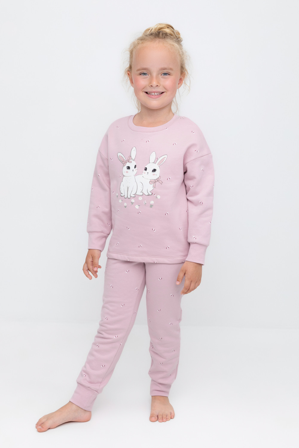 Тёплая пижама с начёсом из натурального хлопка. Джемпер с длинными спущенными рукавами и брюки с эластичной резинкой в поясе. Мягкие манжеты на рукавах и по низу брюк. Оригинальные набивка и принт выполнены из стойких гипоаллергенных текстильных красителей. Изделие сохраняет цвет и форму после многократных стирок. Все трикотажные полотна производятся в соответствии с нормами швейцарского сертификата ЭкоТекс.