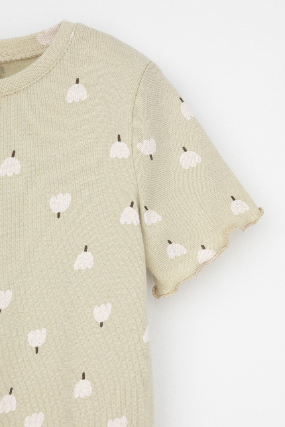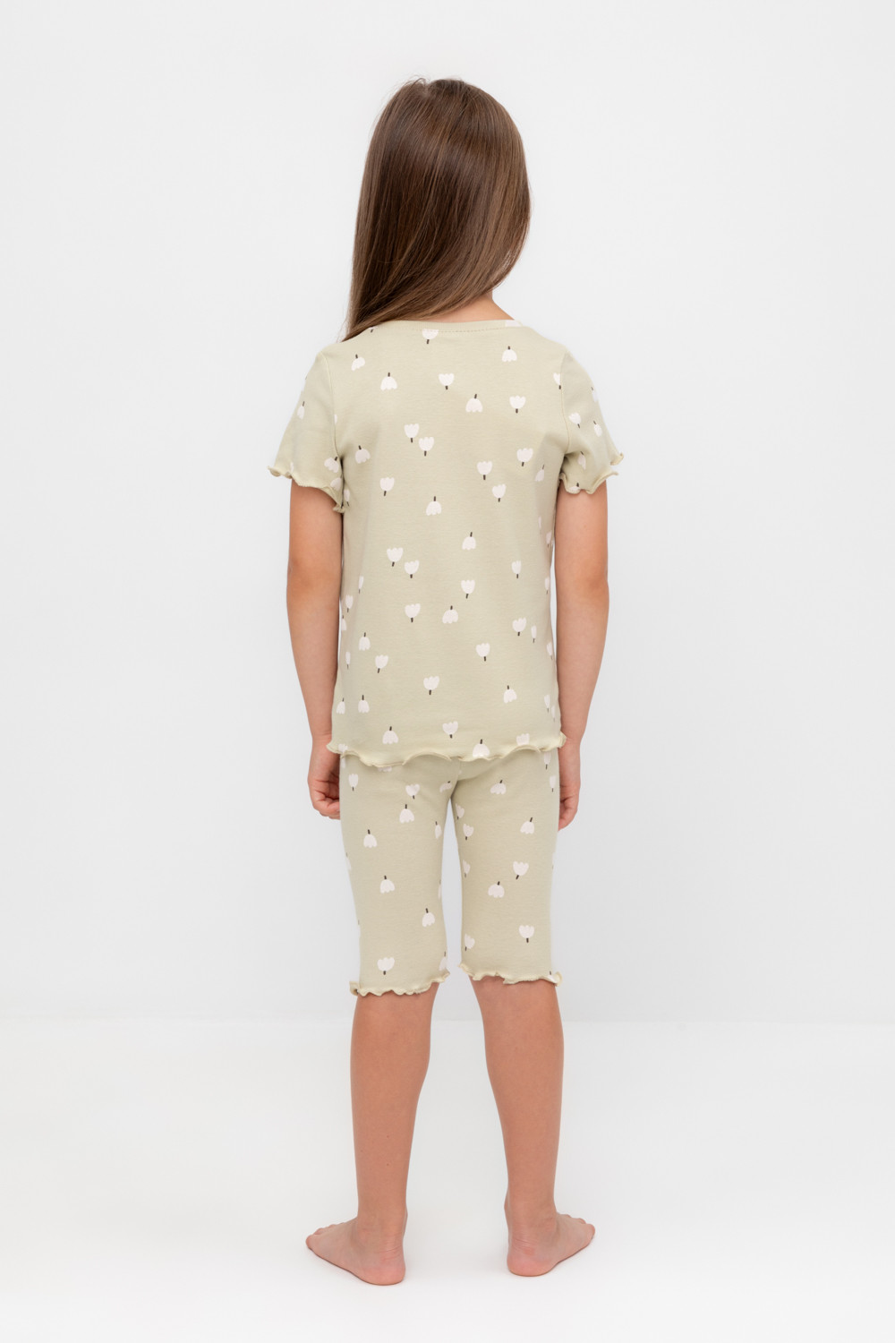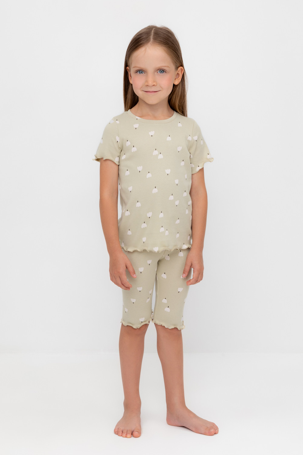 Трикотажная пижама из натурального хлопка . Футболка с короткими втачными рукавами. У шорт в комплекте мягкий, эластичный пояс на резинке. Оригинальная набивка выполнена из стойких, гипоаллергенных текстильных красителей. Комплект сохраняет цвет и форму после многократных стирок. Все трикотажные полотна производятся в соответсвии с нормами Швейцарского сертификата ЭкоТекс.
