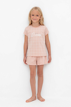 Трикотажная пижама из натурального хлопка. Футболка с принтом и короткими спущенными рукавами. У шорт в комплекте мягкий, эластичный пояс на резинке. Оригинальная набивка выполнена из стойких, гипоаллергенных текстильных красителей. Комплект сохраняет цвет и форму после многократных стирок. Все трикотажные полотна производятся в соответсвии с нормами Швейцарского сертификата ЭкоТекс.