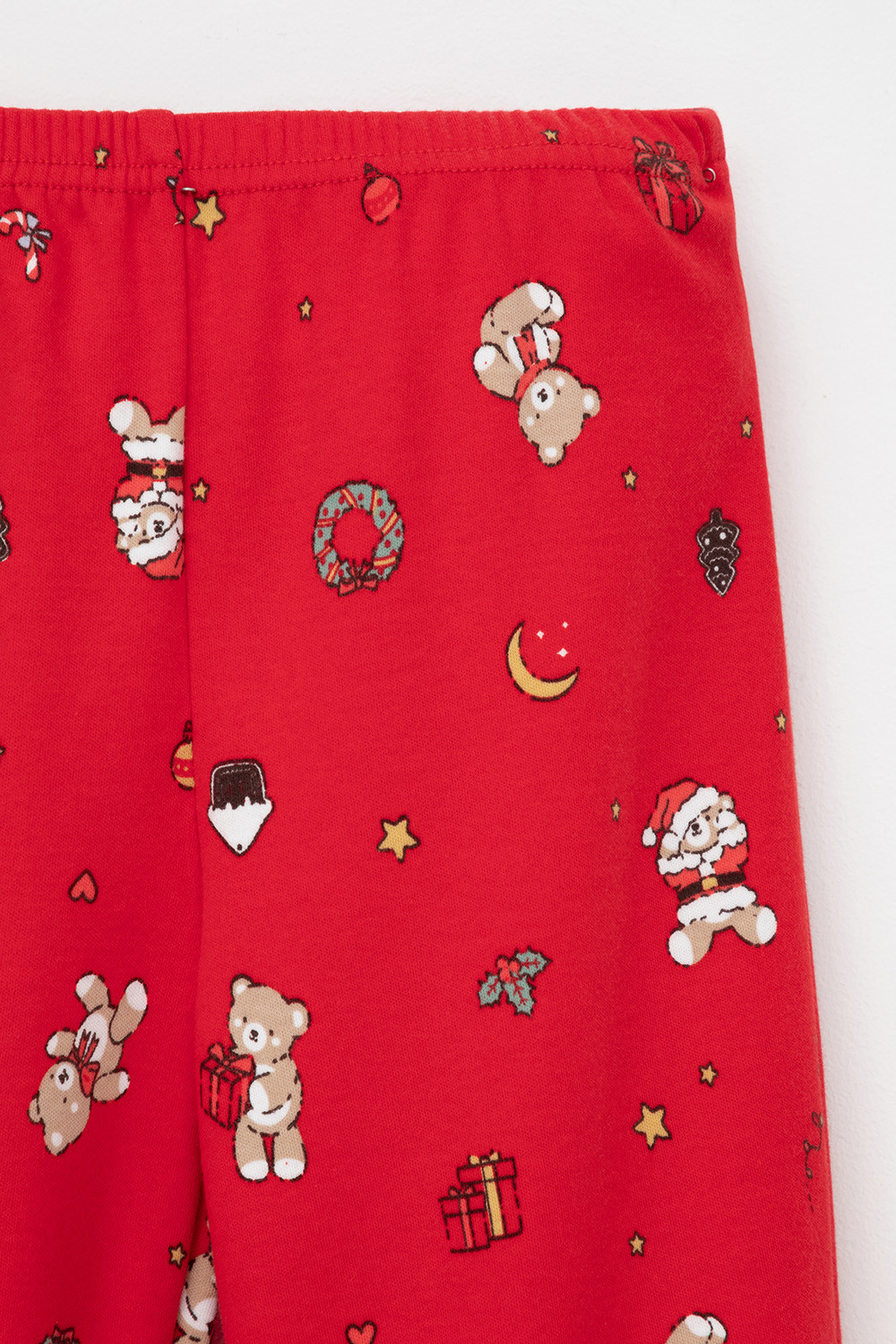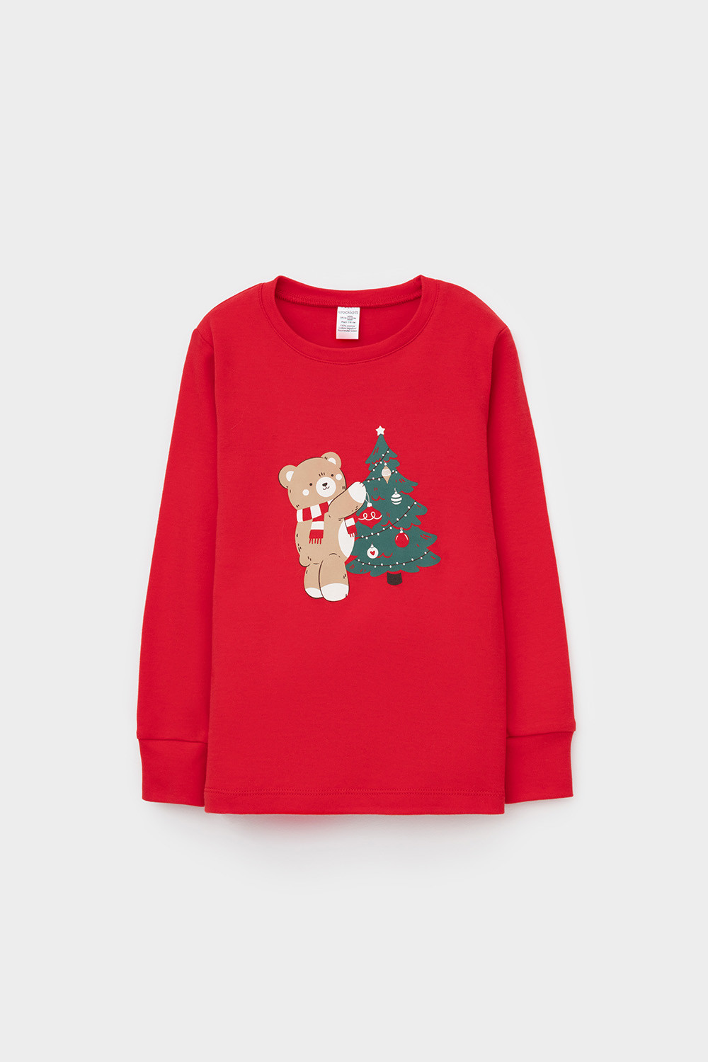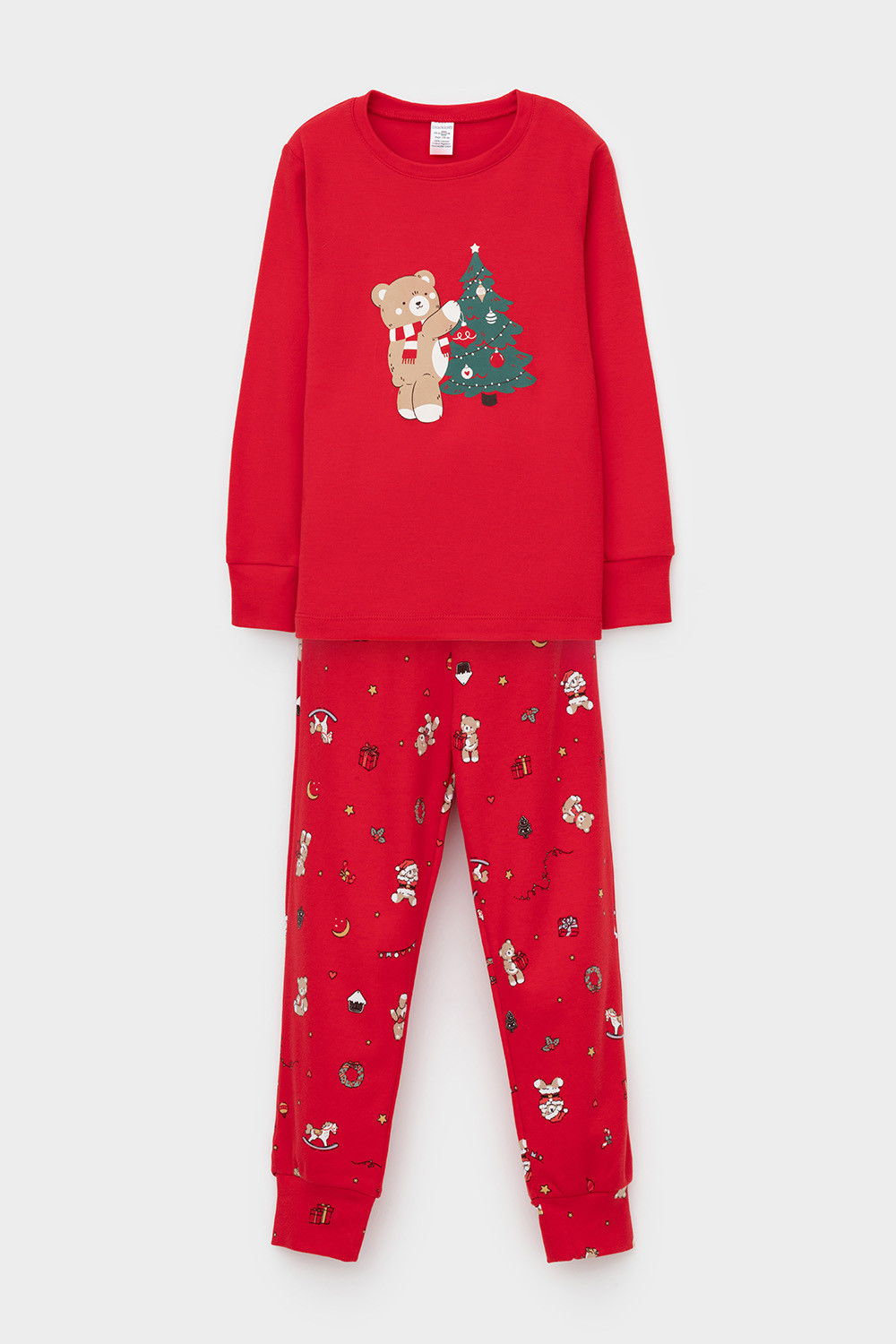 Трикотажный пижамный комплект из натурального хлопка. У джемпера длинные втачные рукава с мягкими манжетами. Брюки с удобным поясом на резинке и эластичными манжетами. Оригинальная набивка и принт выполнены из стойких, гипоаллергенных текстильных красителей. Все трикотажные полотна производятся в соответствии с нормами Швейцарского сертификата ЭкоТекс.