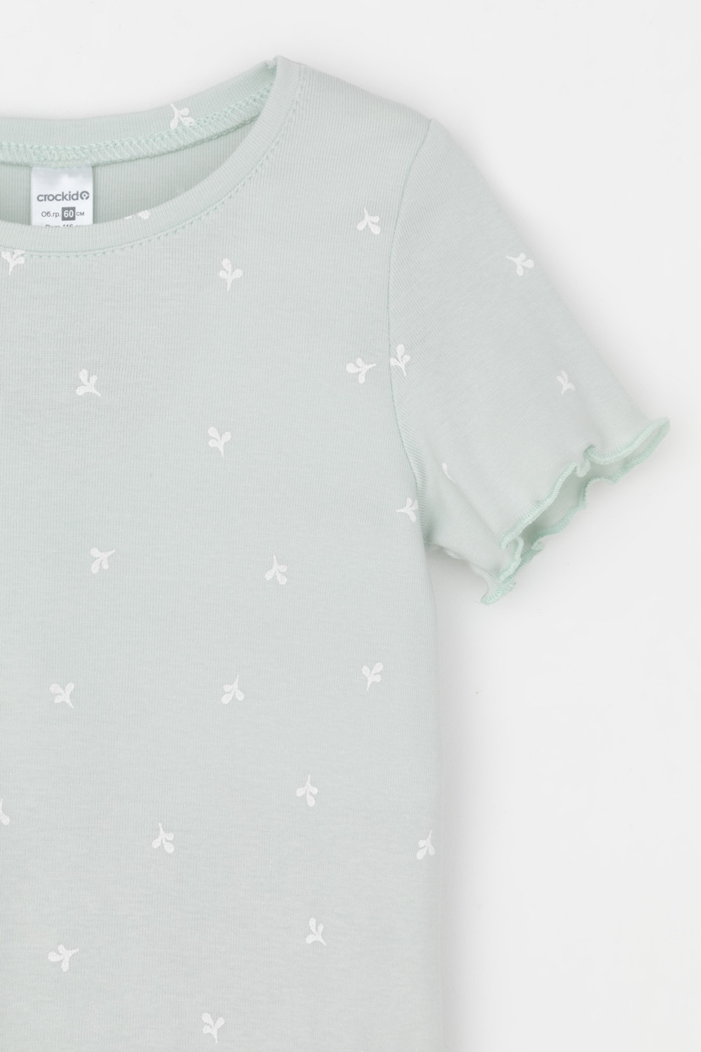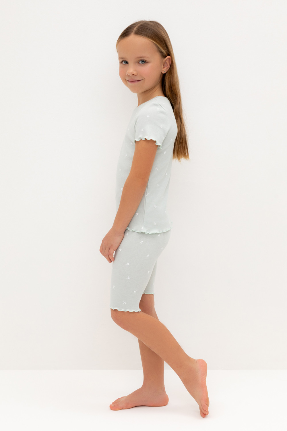 Трикотажная пижама в рубчик из натурального хлопка. Футболка с короткими втачными рукавами и шорты с эластичной резинкой в поясе. Оригинальная набивка выполнена из стойких текстильных гипоаллергенных красителей. Изделие сохраняет цвет и форму после многократных стирок. Все трикотажные полотна производятся в соответсвии с нормами швейцарского сертификата ЭкоТекс.