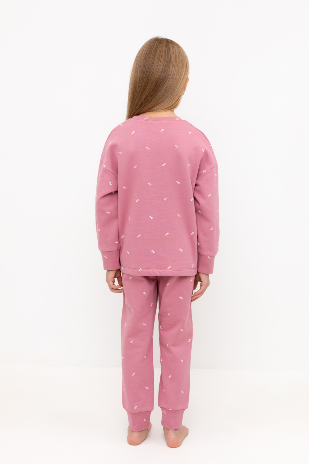 Тёплая пижама с начёсом из натурального хлопка. Джемпер с длинными спущенными рукавами и брюки с эластичной резинкой в поясе. Мягкие манжеты на рукавах и по низу брюк. Оригинальные набивка и принт выполнены из стойких гипоаллергенных текстильных красителей. Изделие сохраняет цвет и форму после многократных стирок. Все трикотажные полотна производятся в соответствии с нормами швейцарского сертификата ЭкоТекс.