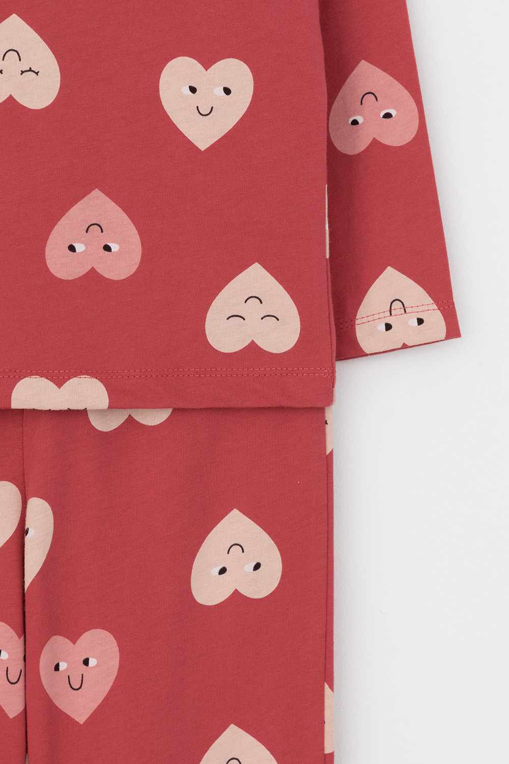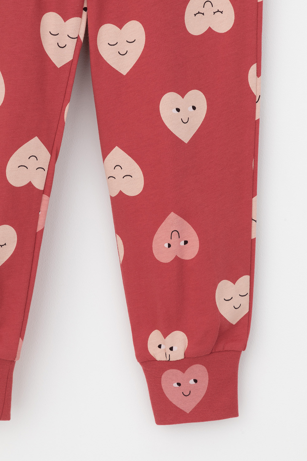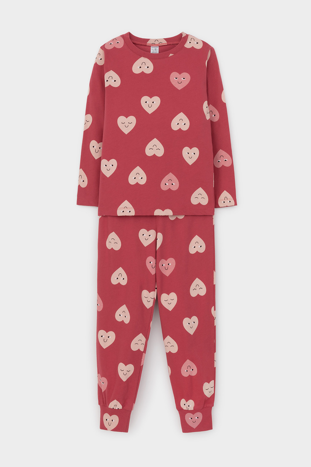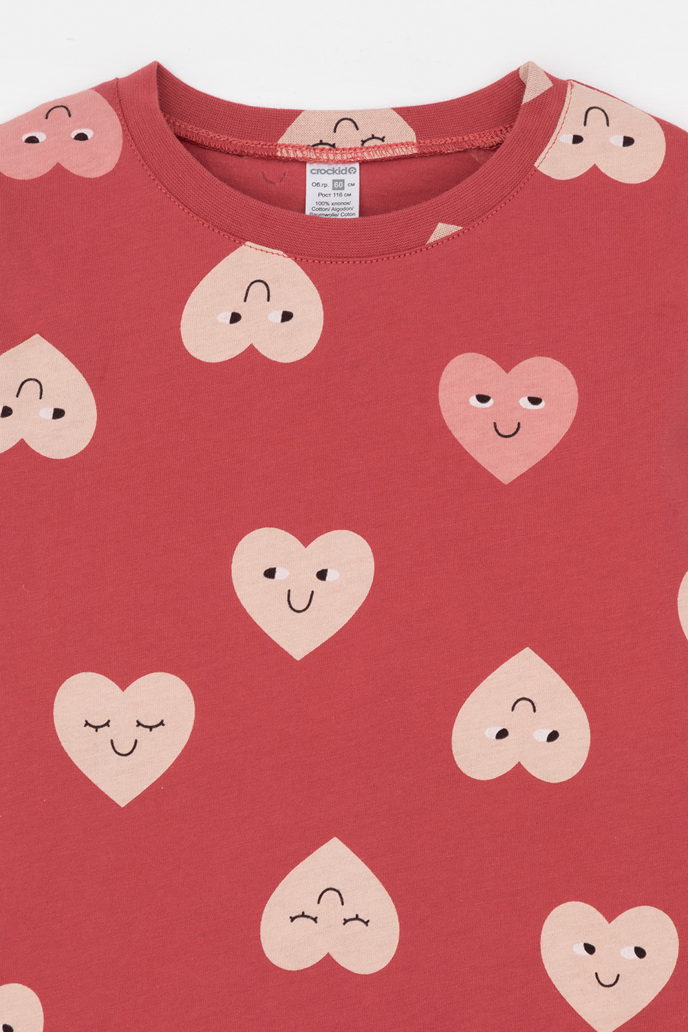 Пижама для девочки из натурального хлопка. Джемпер с длинными втачными рукавами и брюки с эластичной резинкой в поясе. Мягкие манжеты по низу брюк сделаны из материала в рубчик. Оригинальная набивка выполнена из стойких текстильных гипоаллергенных красителей. Изделие сохраняет цвет и форму после многократных стирок. Все трикотажные полотна производятся в соответствии с нормами швейцарского сертификата ЭкоТекс.