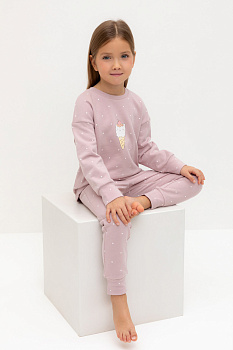 Трикотажная пижама с начёсом из натурального хлопка. Джемпер с длинными спущенными рукавами и брюки с эластичной резинкой в поясе. Мягкие манжеты на рукавах и по низу брюк. Оригинальные набивка и принт выполнены из стойких гипоаллергенных текстильных гипоаллергенных красителей. Изделие сохраняет цвет и форму после многократных стирок. Все трикотажные полотна производятся в соответсвии с нормами швейцарского сертификата ЭкоТекс.