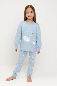 Трикотажная пижама с начёсом из натурального хлопка. Джемпер с длинными спущенными рукавами и брюки с эластичной резинкой в поясе. Мягкие манжеты на рукавах и по низу брюк. Оригинальные набивка и принт выполнены из стойких гипоаллергенных текстильных гипоаллергенных красителей. Изделие сохраняет цвет и форму после многократных стирок. Все трикотажные полотна производятся в соответсвии с нормами швейцарского сертификата ЭкоТекс.