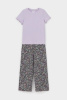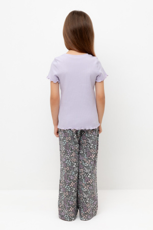 Трикотажная пижама из натурального хлопка. Футболка с короткими втачными рукавами изготовлена из эластичного трикотажа в рубчик. Брюки с эластичной резинкой в поясе выполнены из гладкого трикотажа супрем. Оригинальная набивка выполнена из стойких текстильных гипоаллергенных красителей. Изделие сохраняет цвет и форму после многократных стирок. Все трикотажные полотна производятся в соответсвии с нормами швейцарского сертификата ЭкоТекс.