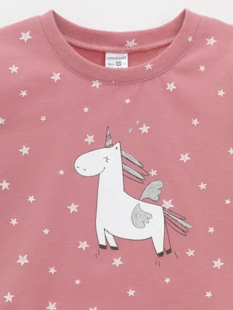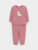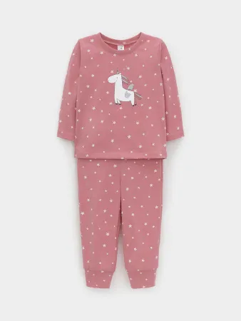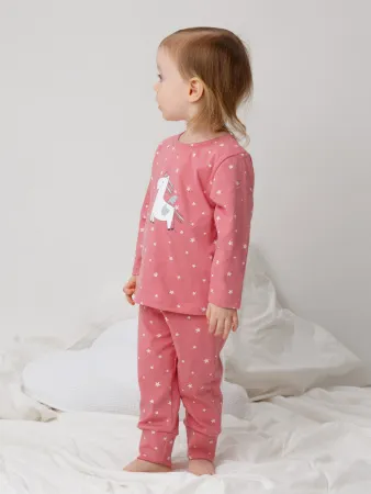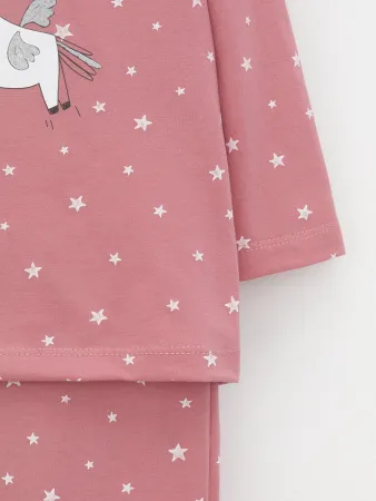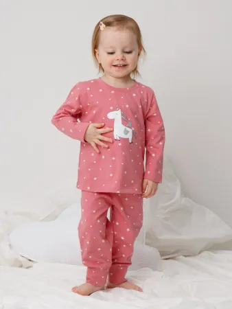 Трикотажная пижама из натурального хлопка. Джемпер с длинными втачными рукавами и брюки с эластичной резинкой в поясе. Мягкие манжеты по низу брюк. Оригинальные набивка и принт выполнены из стойких гипоаллергенных текстильных гипоаллергенных красителей. Изделие сохраняет цвет и форму после многократных стирок. Все трикотажные полотна производятся в соответсвии с нормами швейцарского сертификата ЭкоТекс.