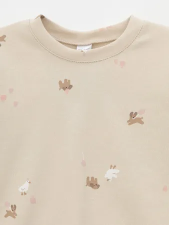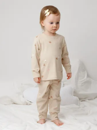 Трикотажная пижама из натурального хлопка. Джемпер с длинными втачными рукавами и брюки с эластичной резинкой в поясе. Мягкие манжеты на рукавах и по низу брюк. Оригинальная набивка выполнена из стойких текстильных гипоаллергенных красителей. Изделие сохраняет цвет и форму после многократных стирок. Все трикотажные полотна производятся в соответсвии с нормами швейцарского сертификата ЭкоТекс.