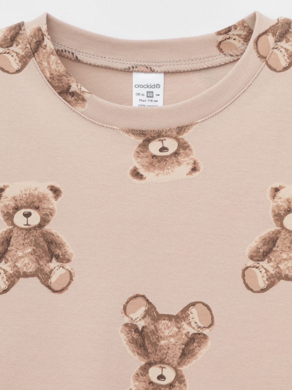 Трикотажная пижама из натурального хлопка. Джемпер с длинными втачными рукавами и брюки с эластичной резинкой в поясе. Мягкие манжеты на рукавах и по низу брюк. Оригинальная набивка выполнена из стойких текстильных гипоаллергенных красителей. Изделие сохраняет цвет и форму после многократных стирок. Все трикотажные полотна производятся в соответствии с нормами швейцарского сертификата ЭкоТекс.