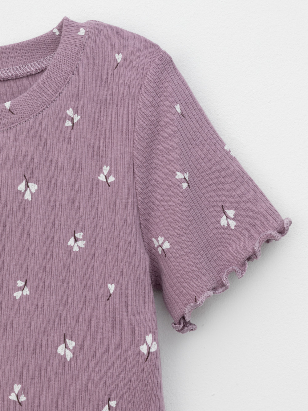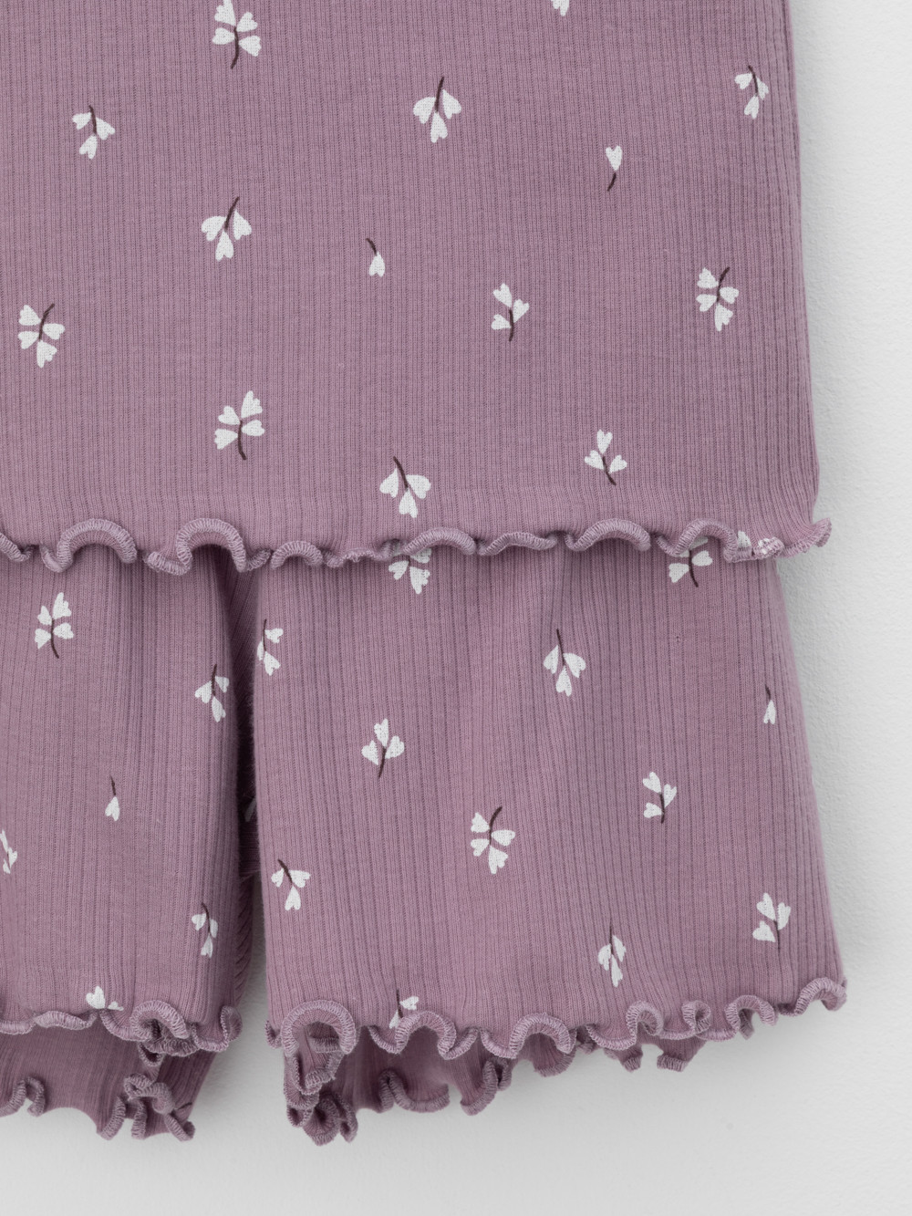 Трикотажная пижама в рубчик из натурального хлопка. Футболка с короткими втачными рукавами и шорты с эластичной резинкой в поясе. Оригинальная набивка выполнена из стойких текстильных гипоаллергенных красителей. Изделие сохраняет цвет и форму после многократных стирок. Все трикотажные полотна производятся в соответствии с нормами швейцарского сертификата ЭкоТекс.