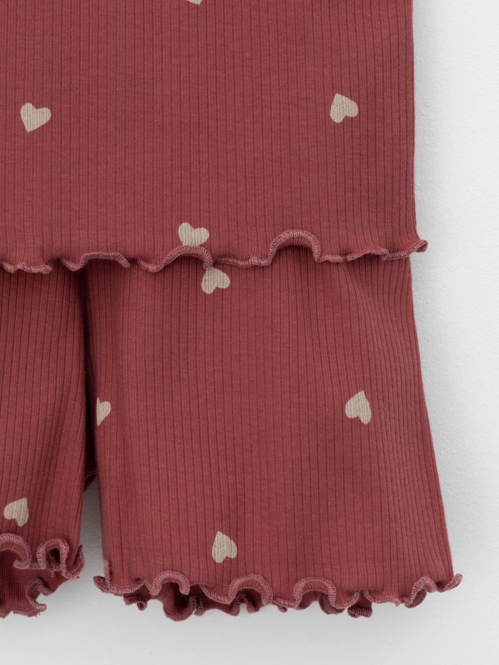 Трикотажная пижама в рубчик из натурального хлопка. Футболка с короткими втачными рукавами и шорты с эластичной резинкой в поясе. Оригинальная набивка выполнена из стойких текстильных гипоаллергенных красителей. Изделие сохраняет цвет и форму после многократных стирок. Все трикотажные полотна производятся в соответствии с нормами швейцарского сертификата ЭкоТекс.