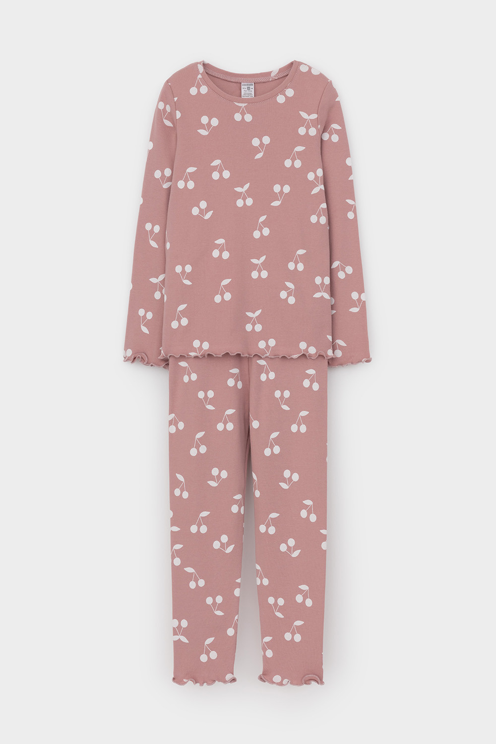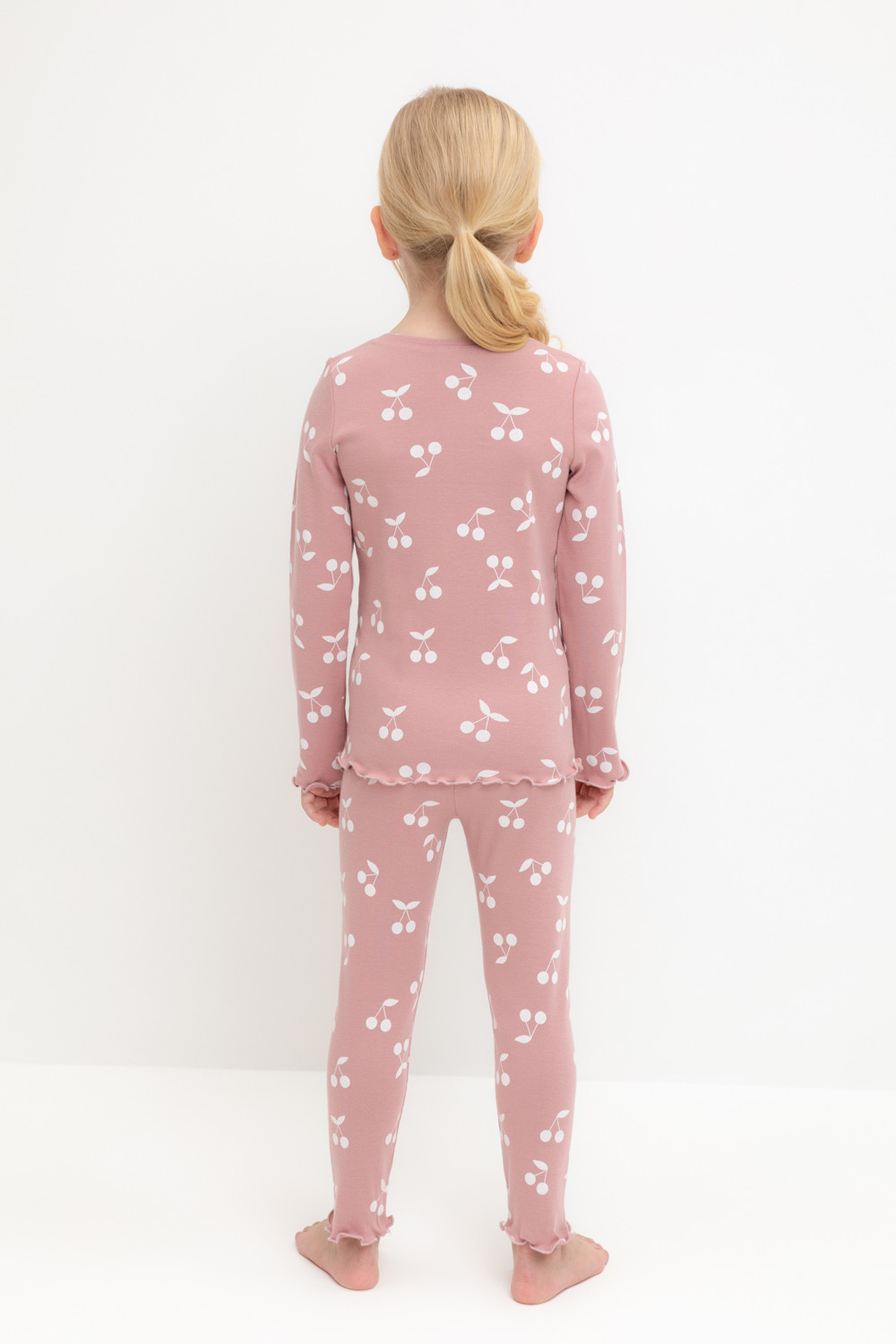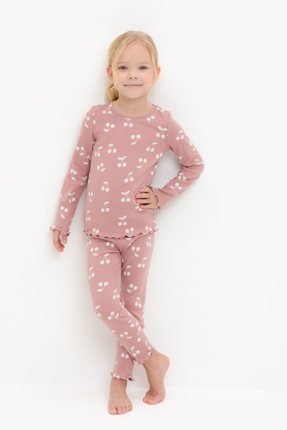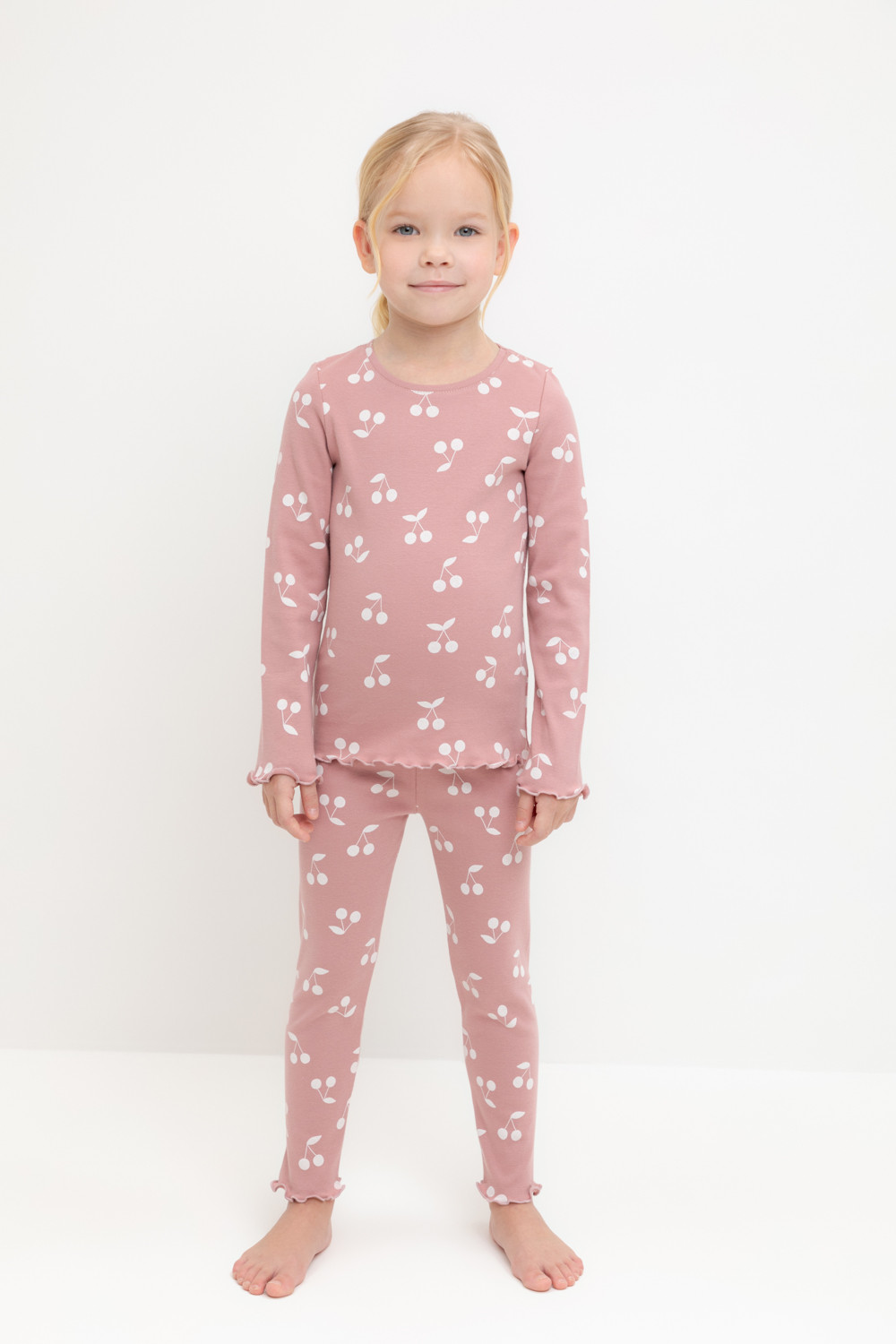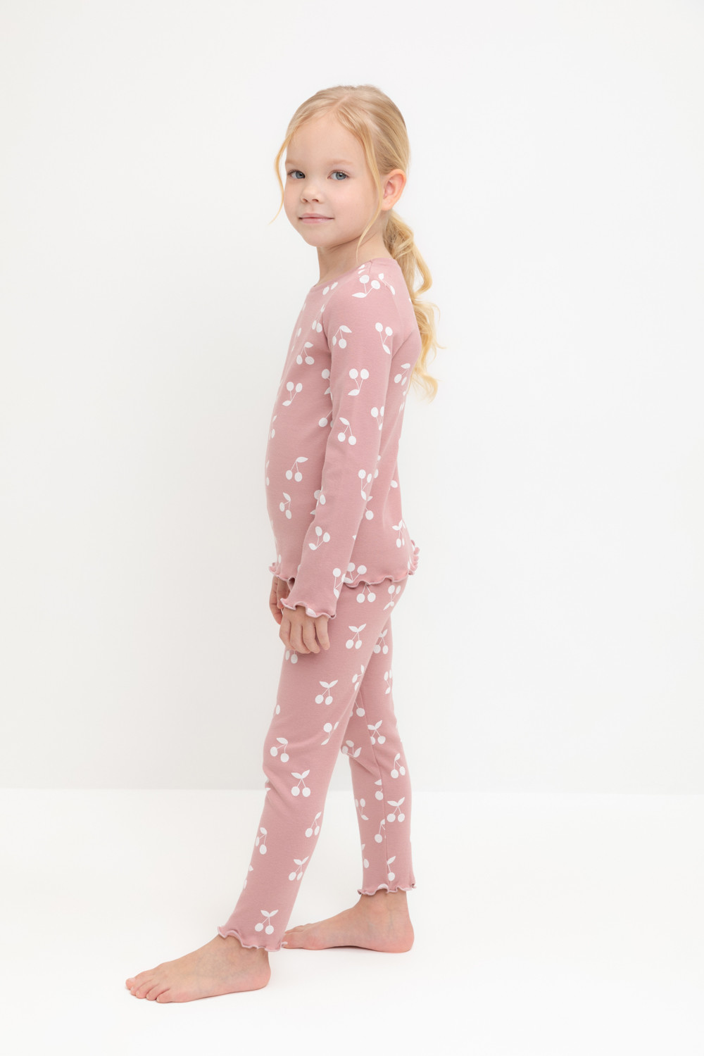 Трикотажная пижама в рубчик из натурального хлопка. Джемпер с длинными втачными рукавами и лосины с эластичной резинкой в поясе. Оригинальная набивка выполнена из стойких текстильных гипоаллергенных красителей. Изделие сохраняет цвет и форму после многократных стирок. Все трикотажные полотна производятся в соответсвии с нормами швейцарского сертификата ЭкоТекс.