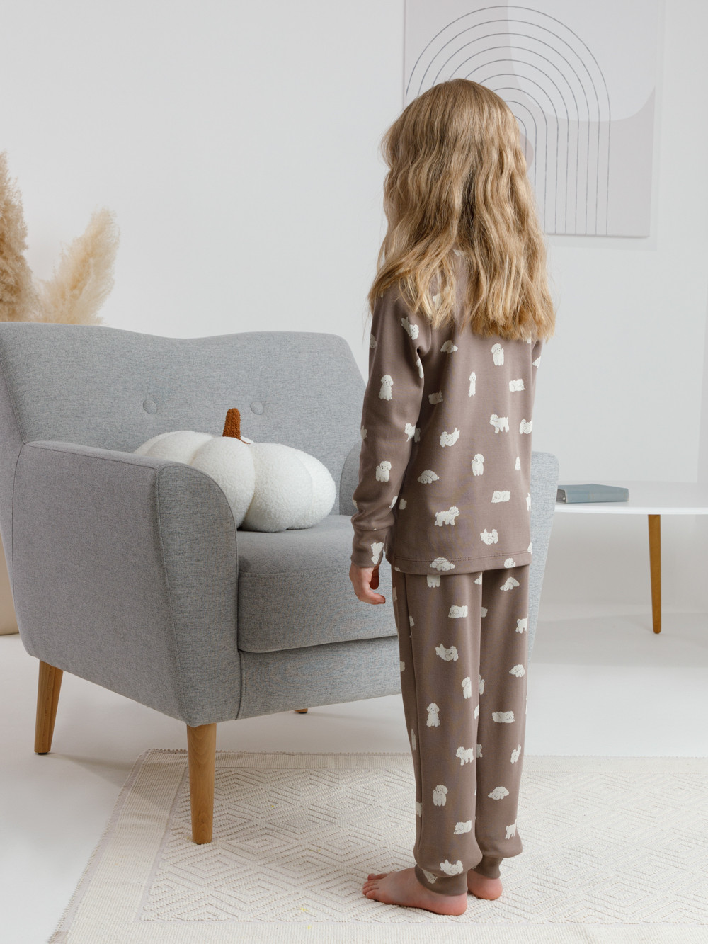 Трикотажная пижама из натурального хлопка. Джемпер с длинными втачными рукавами и брюки с эластичной резинкой в поясе. Мягкие манжеты на рукавах и по низу брюк. Оригинальная набивка выполнена из стойких текстильных гипоаллергенных красителей. Изделие сохраняет цвет и форму после многократных стирок. Все трикотажные полотна производятся в соответствии с нормами швейцарского сертификата ЭкоТекс.
