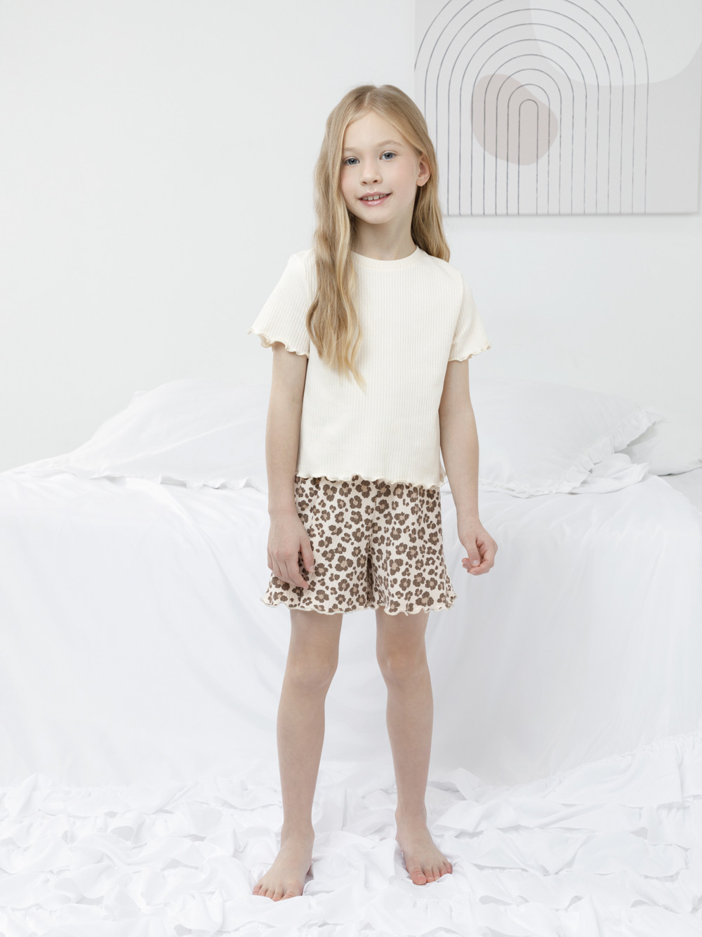 Пижама из трикотажа в рубчик для комфортного сна и отдыха. Эластичная футболка с короткими рукавами и свободные шорты с мягкой резинкой в поясе. Комплект изготовлен из 100% натурального хлопка. Материал приятен к телу, не теряет форму и позволяет коже дышать. Оригинальный рисунок выполнен из стойких текстильных гипоаллергенных красителей. Все трикотажные полотна производятся в соответствии с нормами швейцарского сертификата ЭкоТекс.