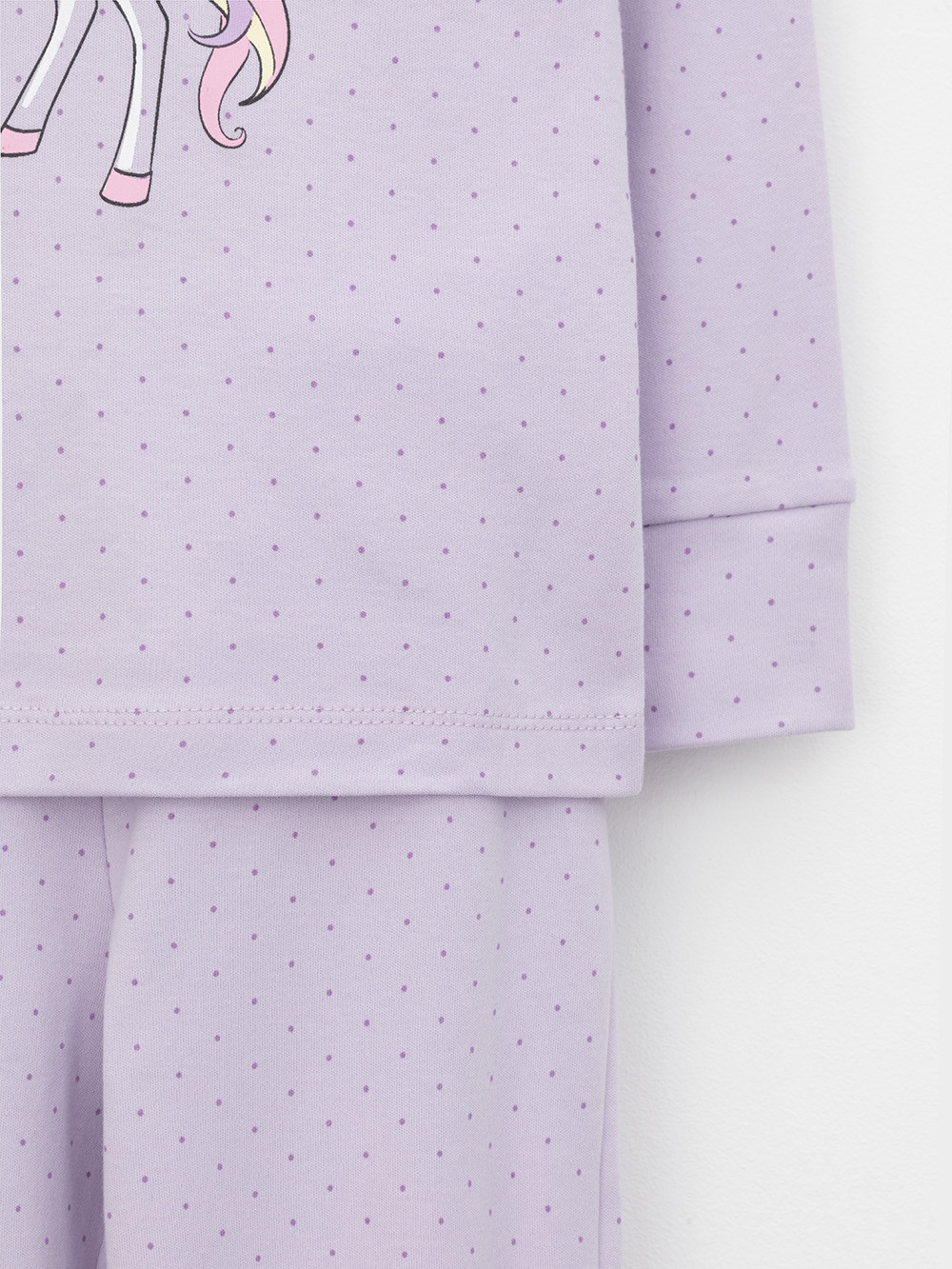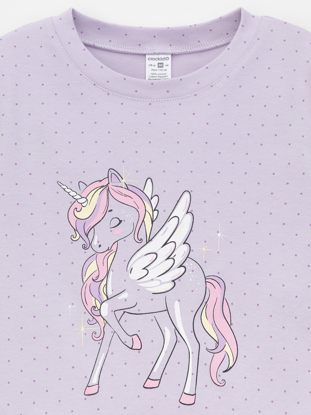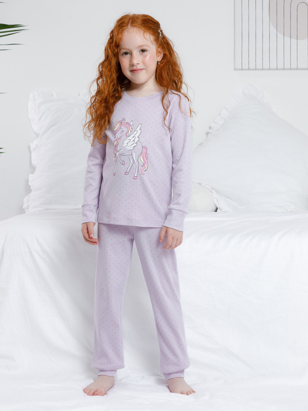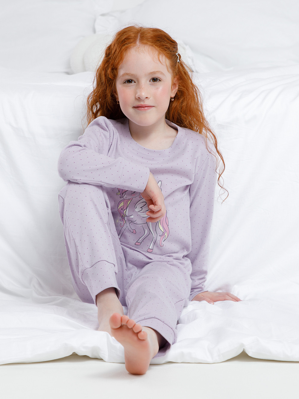 Трикотажная пижама из натурального хлопка. Джемпер с длинными втачными рукавами и брюки с эластичной резинкой в поясе. Мягкие манжеты на рукавах и по низу брюк. Оригинальная набивка и принт выполнены из стойких текстильных гипоаллергенных красителей. Изделие сохраняет цвет и форму после многократных стирок. Все трикотажные полотна производятся в соответствии с нормами швейцарского сертификата ЭкоТекс.