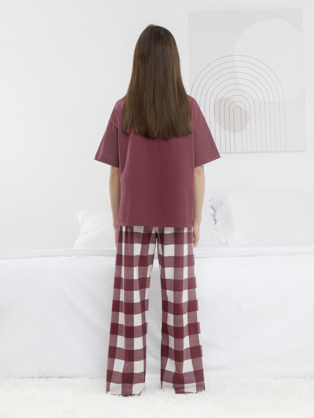 Трикотажная пижама из натурального хлопка для комфортного сна и отдыха. Футболка с короткими спущенными рукавами и прямые брюки с мягкой эластичной резинкой в поясе изготовлены из гладкого трикотажа супрем. Оригинальная набивка и принт выполнены из стойких текстильных гипоаллергенных красителей. Изделие сохраняет цвет и форму после многократных стирок. Все трикотажные полотна производятся в соответствии с нормами швейцарского сертификата ЭкоТекс.