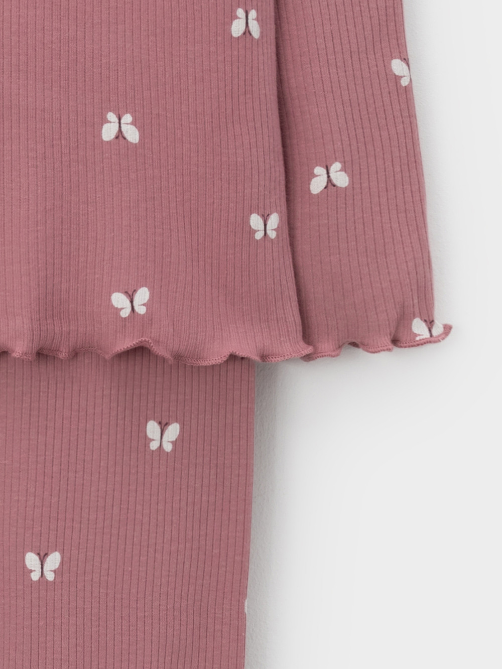 Трикотажная пижама в рубчик из натурального хлопка. Джемпер с длинными втачными рукавами и лосины с эластичной резинкой в поясе. Оригинальная набивка выполнена из стойких текстильных гипоаллергенных красителей. Изделие сохраняет цвет и форму после многократных стирок. Все трикотажные полотна производятся в соответствии с нормами швейцарского сертификата ЭкоТекс.
