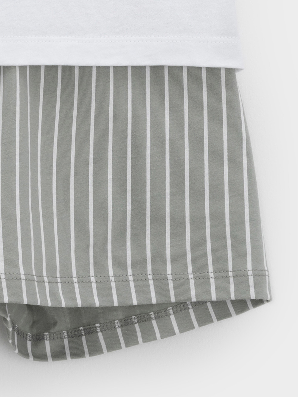 Трикотажная пижама из натурального хлопка для комфортного сна и отдыха. Свободная футболка с короткими спущенными рукавами и шорты с мягкой эластичной резинкой в поясе. Оригинальный рисунок выполнен из стойких текстильных гипоаллергенных красителей. Изделие сохраняет цвет и форму после многократных стирок. Все трикотажные полотна производятся в соответствии с нормами швейцарского сертификата ЭкоТекс.