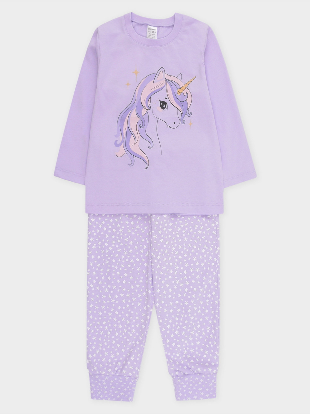 Пижама для девочки из натурального хлопка. Джемпер с длинными втачными рукавами и брюки с эластичной резинкой в поясе. Мягкие манжеты по низу брюк сделаны из материала в рубчик. Оригинальная набивка и принт выполнены из стойких текстильных гипоаллергенных красителей. Изделие сохраняет цвет и форму после многократных стирок. Все трикотажные полотна производятся в соответствии с нормами швейцарского сертификата ЭкоТекс.