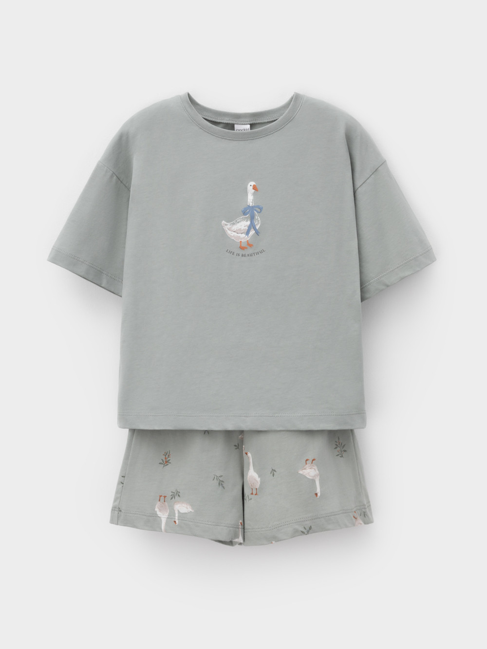 Трикотажная пижама из натурального хлопка для комфортного сна и отдыха. Футболка с короткими спущенными рукавами и шорты с мягкой эластичной резинкой в поясе. Оригинальная набивка и принт выполнены из стойких текстильных гипоаллергенных красителей. Изделие сохраняет цвет и форму после многократных стирок. Все трикотажные полотна производятся в соответствии с нормами швейцарского сертификата ЭкоТекс.