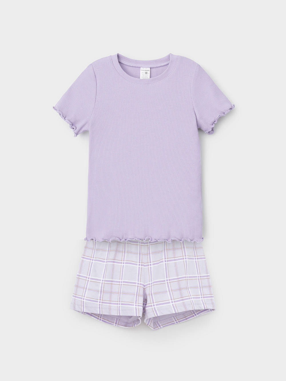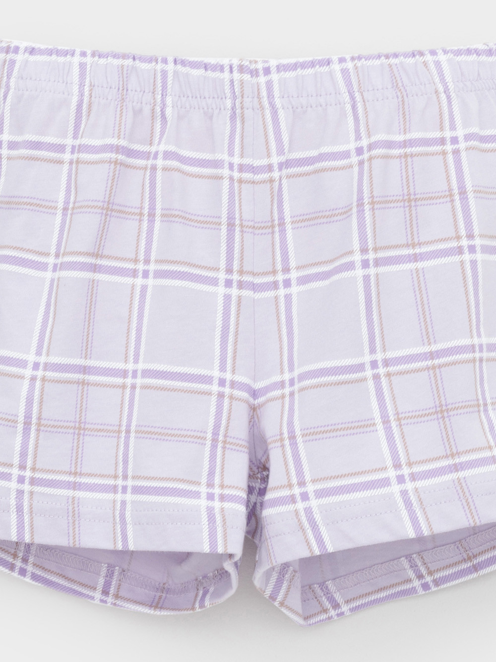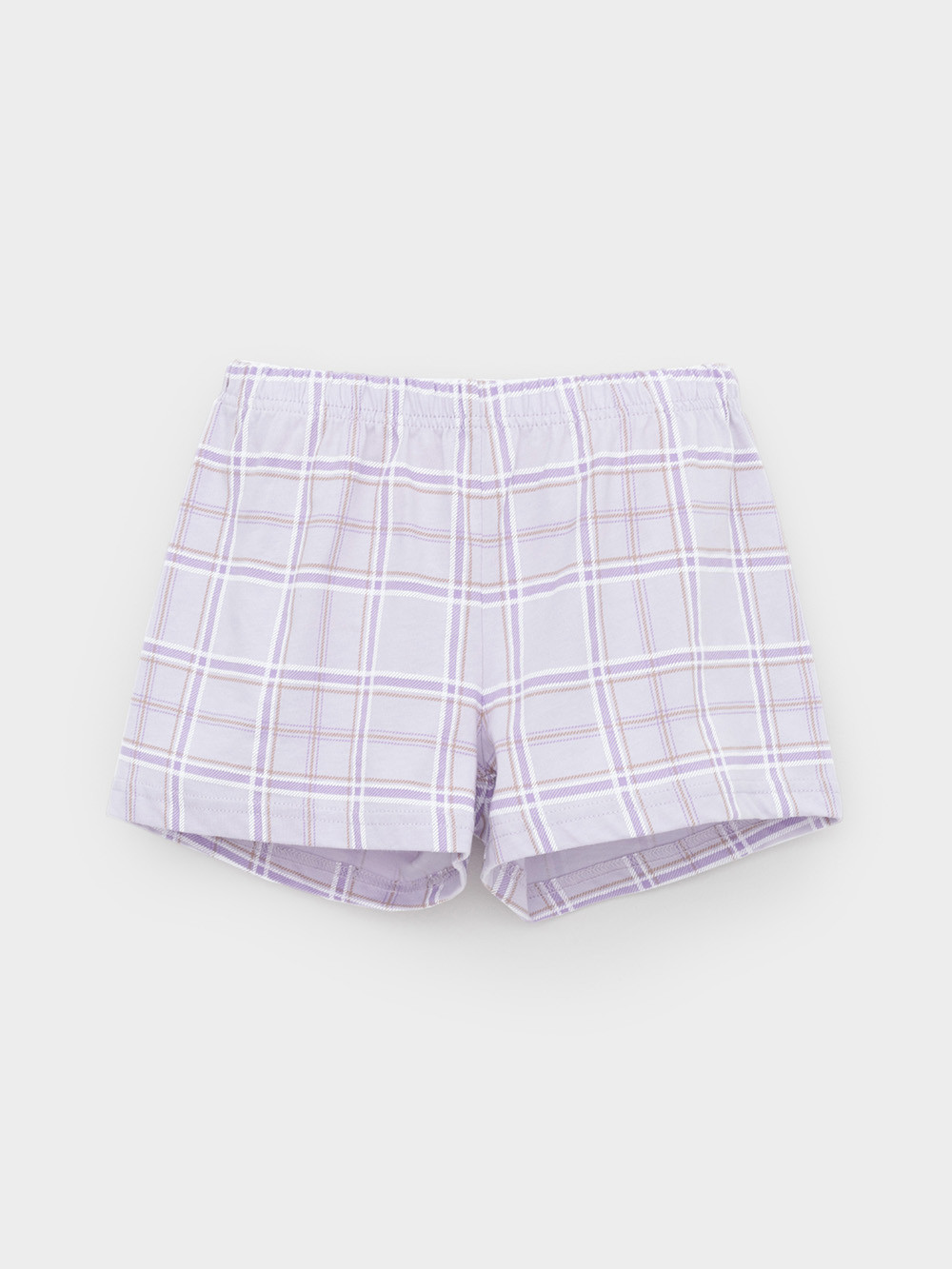 Трикотажная пижама из натурального хлопка. Футболка с короткими втачными рукавами изготовлена из эластичного трикотажа в рубчик. Шорты с эластичной резинкой в поясе выполнены из гладкого трикотажа супрем. Оригинальная набивка выполнена из стойких текстильных гипоаллергенных красителей. Изделие сохраняет цвет и форму после многократных стирок. Все трикотажные полотна производятся в соответствии с нормами швейцарского сертификата ЭкоТекс.