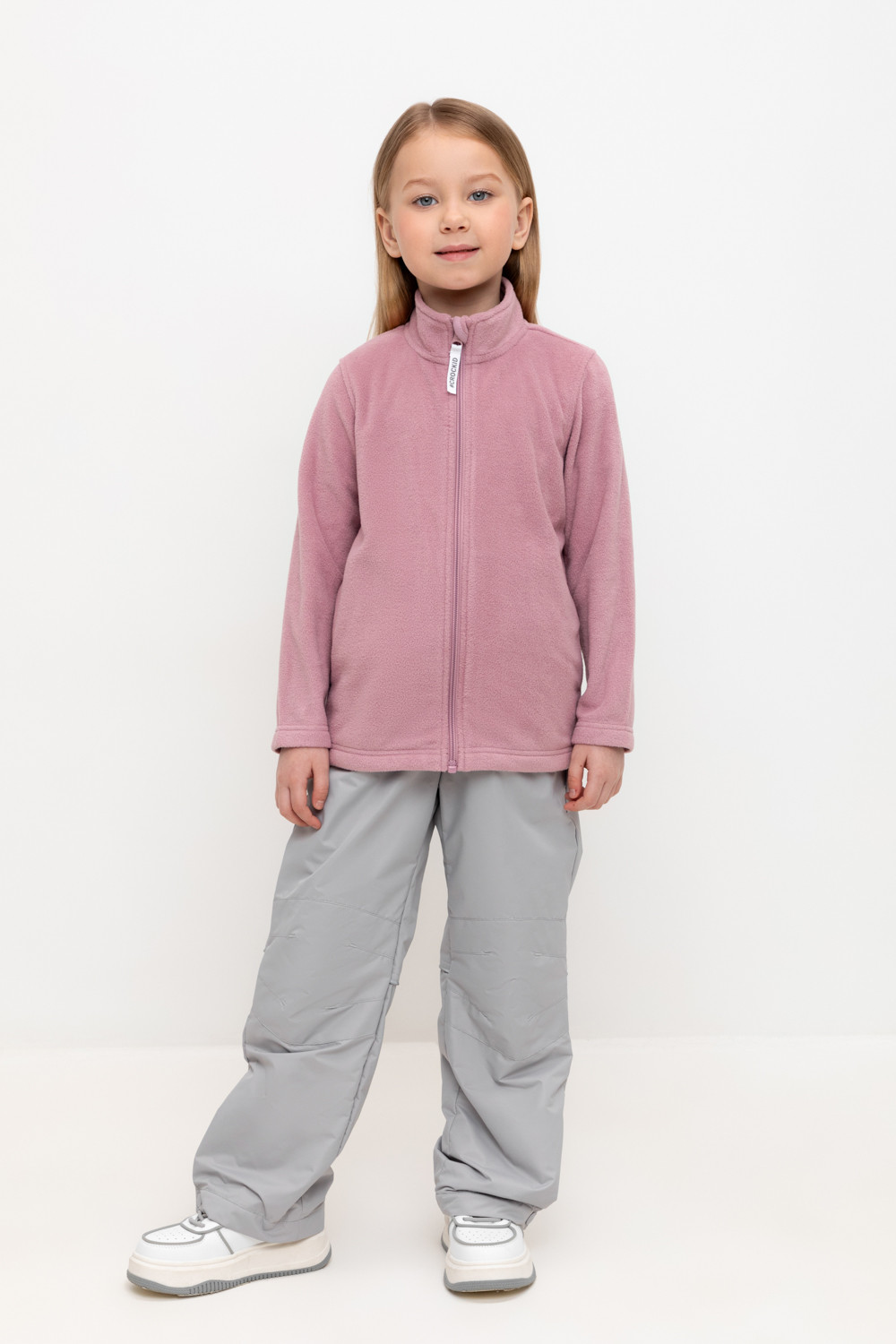 Ветровочные брюки из мембранной, фактурной ткани с дополнительной тефлоновой обработкой. Данный вид обработки предохраняет изделие от загрязнения и лучше отводит влагу. Подклад из 100%  полиэстера - флиса. Область коленей дополнительно усилена деталями из основной ткани. В поясе предусмотрен шнурок для регулировки ширины изделия. Во всех изделиях верхнего ассортимента для безопасности ребенка предусмотрены светоотражающие элементы.