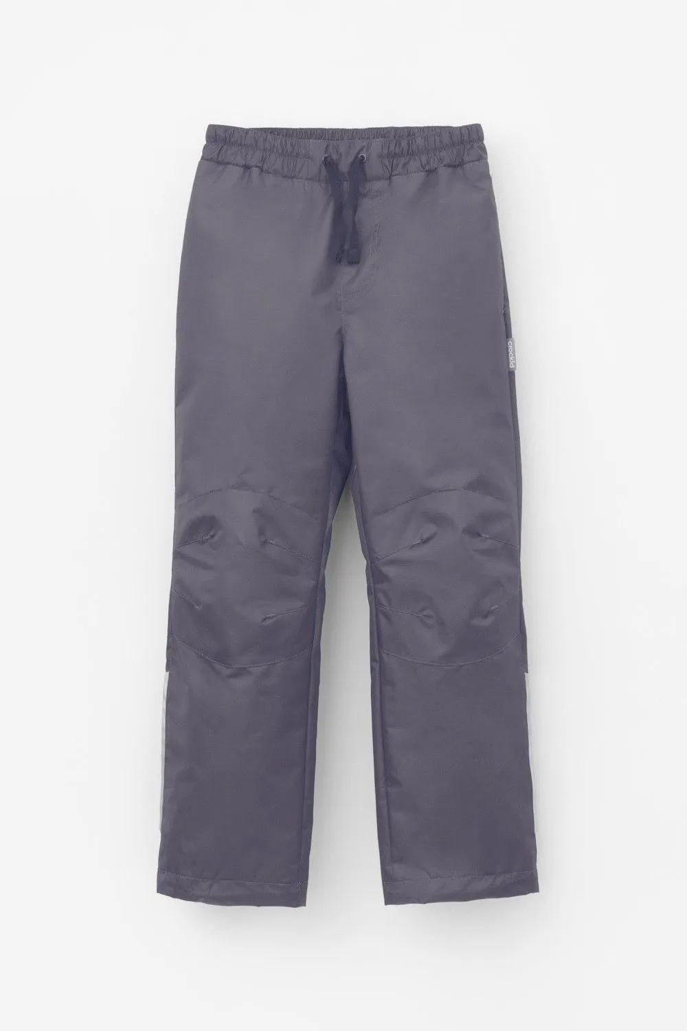 Ветровочные брюки из мембранной, фактурной ткани с дополнительной тефлоновой обработкой. Данный вид обработки предохраняет изделие от загрязнения и лучше отводит влагу. Подклад из 100% хлопка. Область коленей дополнительно усилена деталями из основной ткани. В поясе предусмотрен шнурок для регулировки ширины изделия. Во всех изделиях верхнего ассортимента для безопасности ребенка предусмотрены светоотражающие элементы.