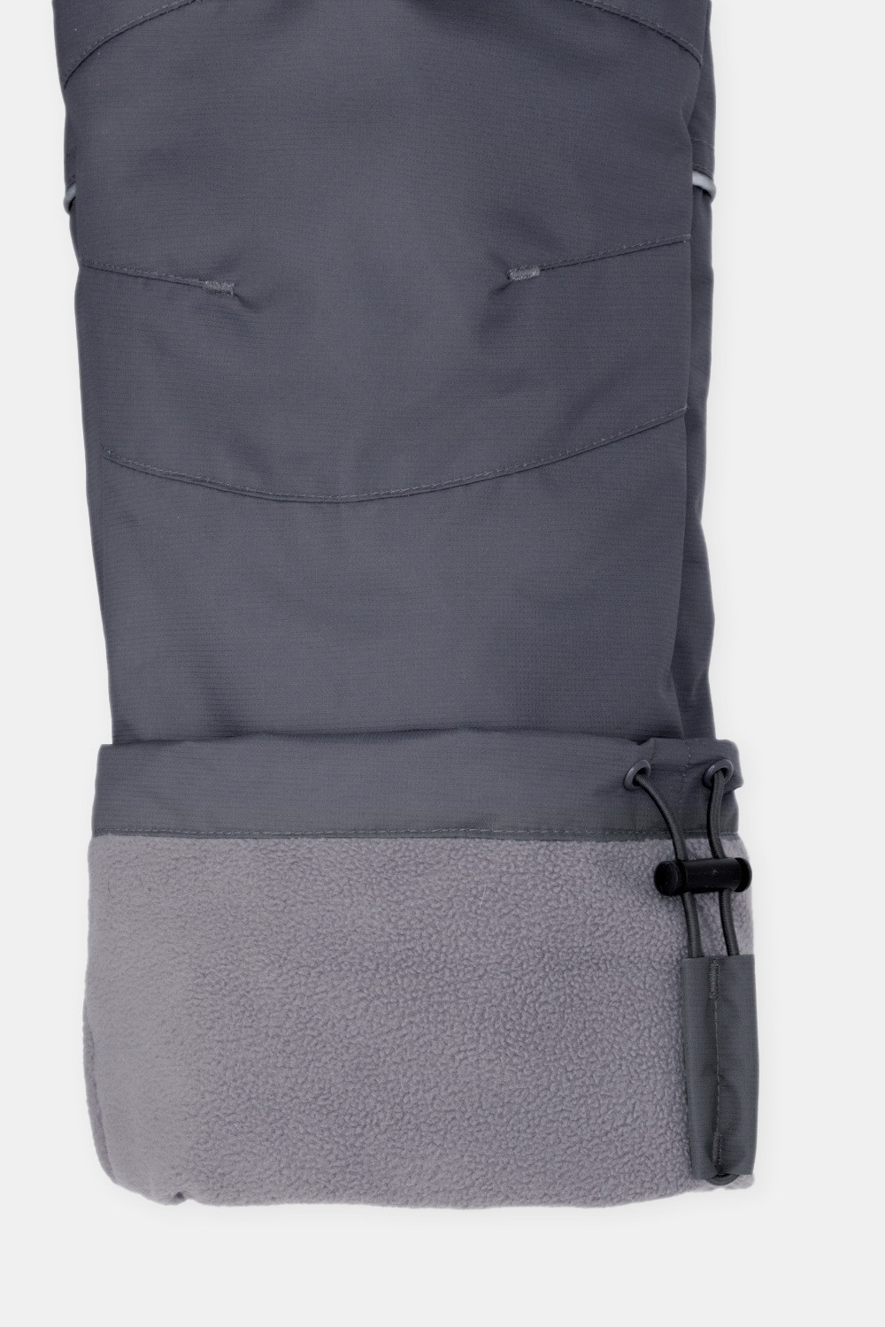 Ветровочные брюки из мембранной ткани с дополнительной тефлоновой обработкой. Данный вид обработки предохраняет изделие от загрязнения и лучше отводит влагу. Подклад из флиса, 100% полиэстер. Эластичный пояс утягивается при помощи шнурка. Ширина низа регулируется утяжкой со стопперами. Во всех изделиях верхнего ассортимента для безопасности ребенка предусмотрены светоотражающие элементы.