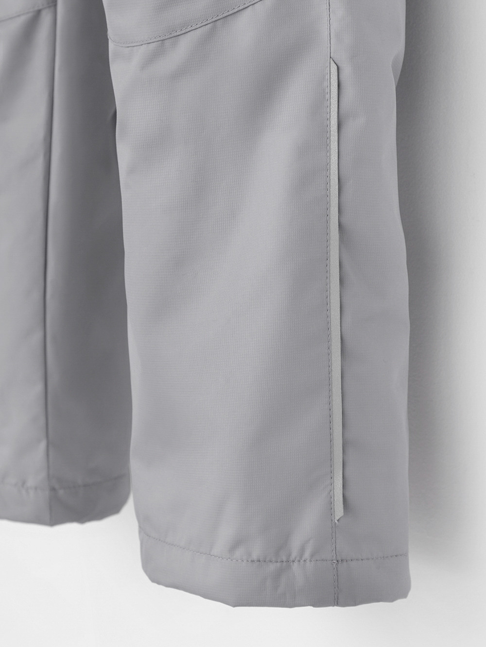 Ветровочные брюки из мембранной ткани с дополнительной тефлоновой обработкой. Данный вид обработки предохраняет изделие от загрязнения и лучше отводит влагу. Подклад из 100% хлопка. Эластичный пояс утягивается при помощи шнурка. Ширина низа регулируется утяжкой со стопперами. Во всех изделиях верхнего ассортимента для безопасности ребенка предусмотрены светоотражающие элементы.