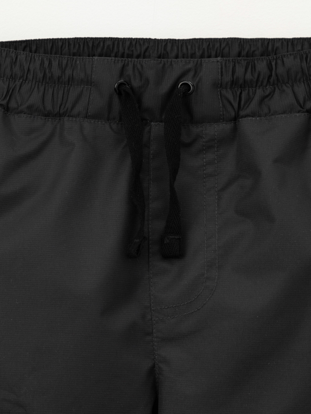 Ветровочные брюки из мембранной ткани с дополнительной тефлоновой обработкой. Данный вид обработки предохраняет изделие от загрязнения и лучше отводит влагу. Подклад из 100% хлопка. Эластичный пояс утягивается при помощи шнурка. Ширина низа регулируется утяжкой со стопперами. Во всех изделиях верхнего ассортимента для безопасности ребенка предусмотрены светоотражающие элементы.