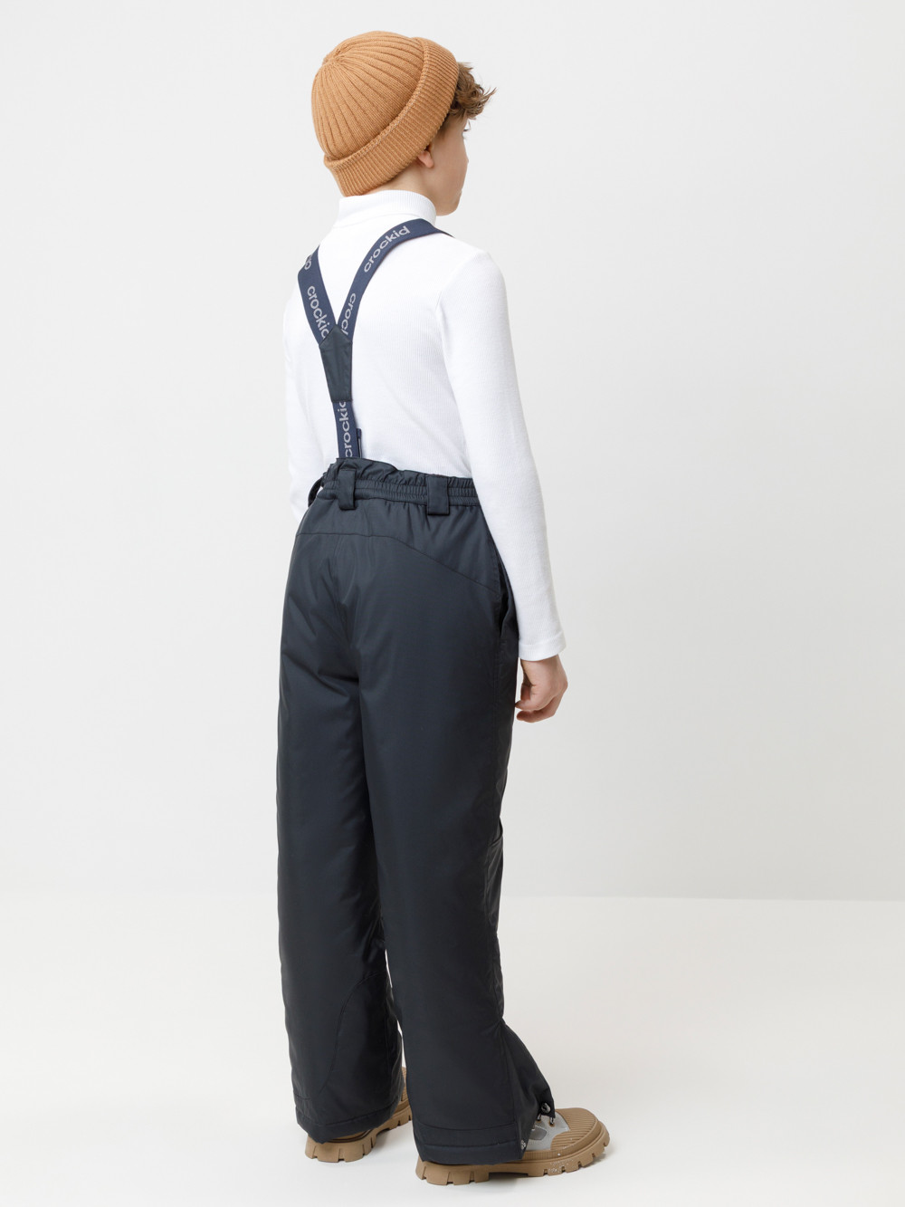 Зимние детские брюки с утеплителем 200 г/м2 из мембранной ткани с дополнительной тефлоновой обработкой, которая предохраняет изделие от загрязнений и отталкивает влагу. Подклад выполнен из мягкого полиэстера Tricot. Благодаря подтяжкам с регулировкой по росту брюки идеально сидят на фигуре. Застёжка на молнию и кнопку облегчает одевание. По бокам два кармана. Колени с анатомическим кроем усилены дополнительными вставками из основной ткани. Низ регулируется под ширину обуви при помощи кнопки. Внутренняя противоснежная юбка защищает обувь от попадания снега и удерживает брюки в закреплённом положении. Во всех изделиях верхнего ассортимента для безопасности ребёнка предусмотрены светоотражающие элементы.