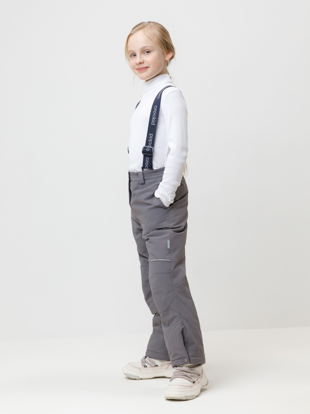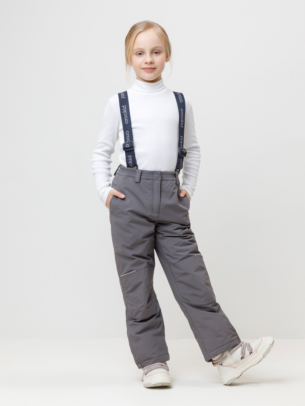 Зимние детские брюки с утеплителем 200 г/м2 из мембранной ткани с дополнительной тефлоновой обработкой, которая предохраняет изделие от загрязнений и отталкивает влагу. Подклад выполнен из мягкого полиэстера Tricot. Благодаря подтяжкам с регулировкой по росту брюки идеально сидят на фигуре. Застёжка на молнию и кнопку облегчает одевание. По бокам два кармана. Колени с анатомическим кроем усилены дополнительными вставками из основной ткани. Низ регулируется под ширину обуви при помощи кнопки. Внутренняя противоснежная юбка защищает обувь от попадания снега и удерживает брюки в закреплённом положении. Во всех изделиях верхнего ассортимента для безопасности ребёнка предусмотрены светоотражающие элементы.