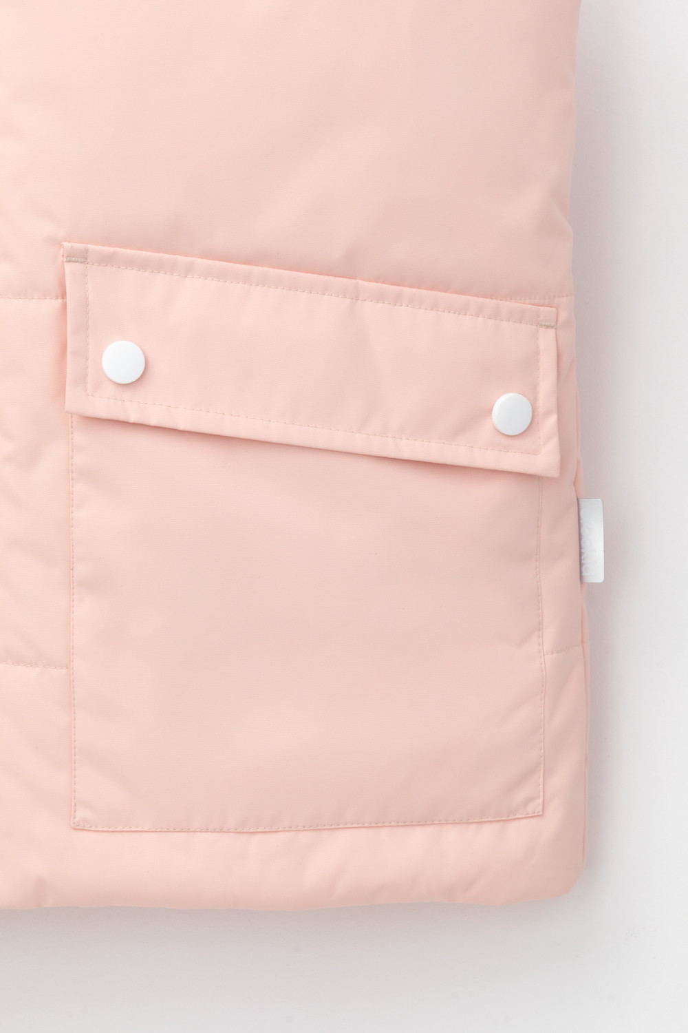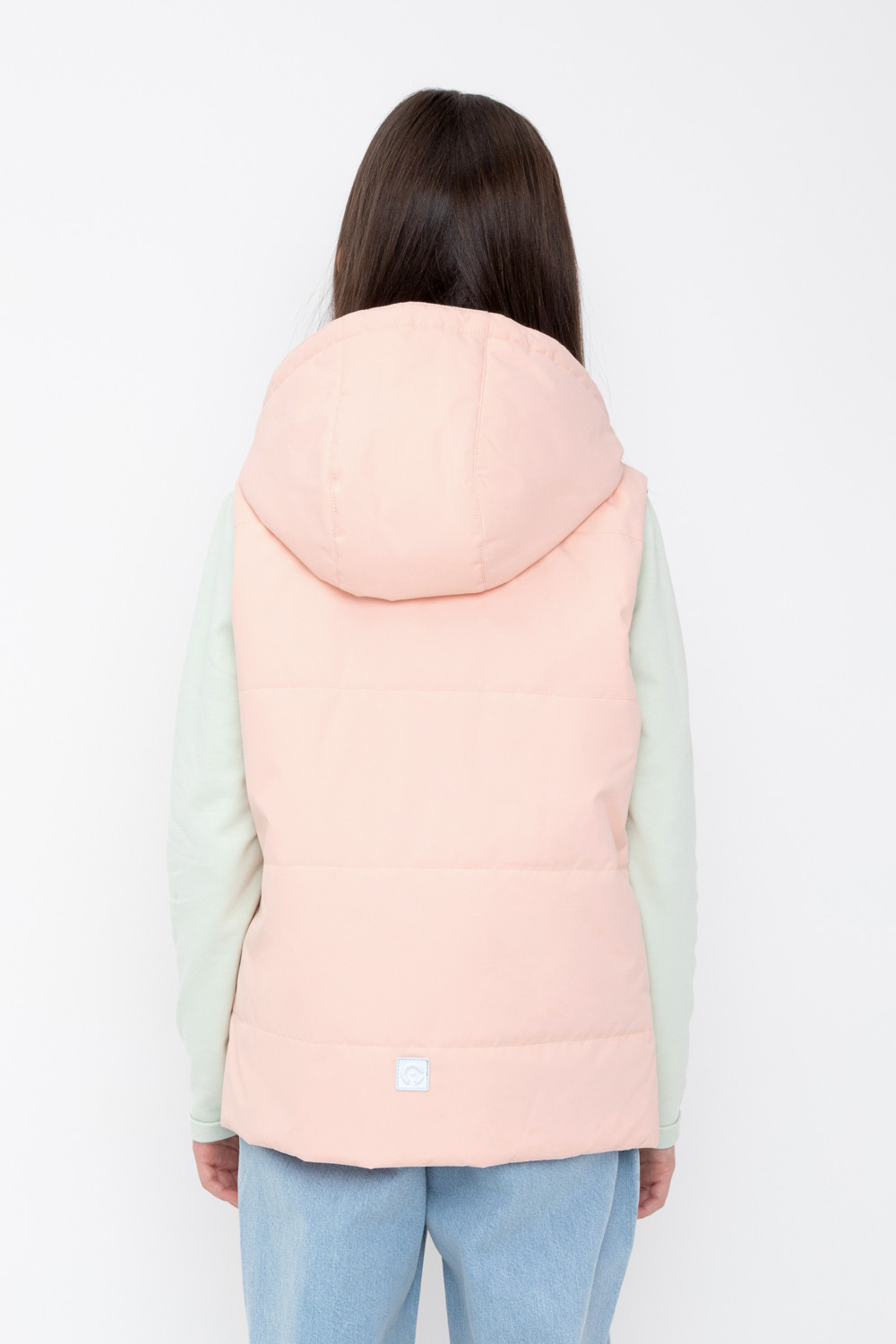 Стеганный жилет с капюшоном для девочки с утеплителем Fellex®: 120 г/м2. Выполнен из мембранной ткани с дополнительной тефлоновой обработкой и матовым покрытием. Данный вид обработки предохраняет изделие от загрязнения и лучше отводит влагу. Подклад из 100% полиэстра. У изделия предусмотрена защита подбородка. Накладные карманы с клапанами на кнопках. Во всех изделиях верхнего ассортимента для безопасности ребенка предусмотрены светоотражающие элементы.