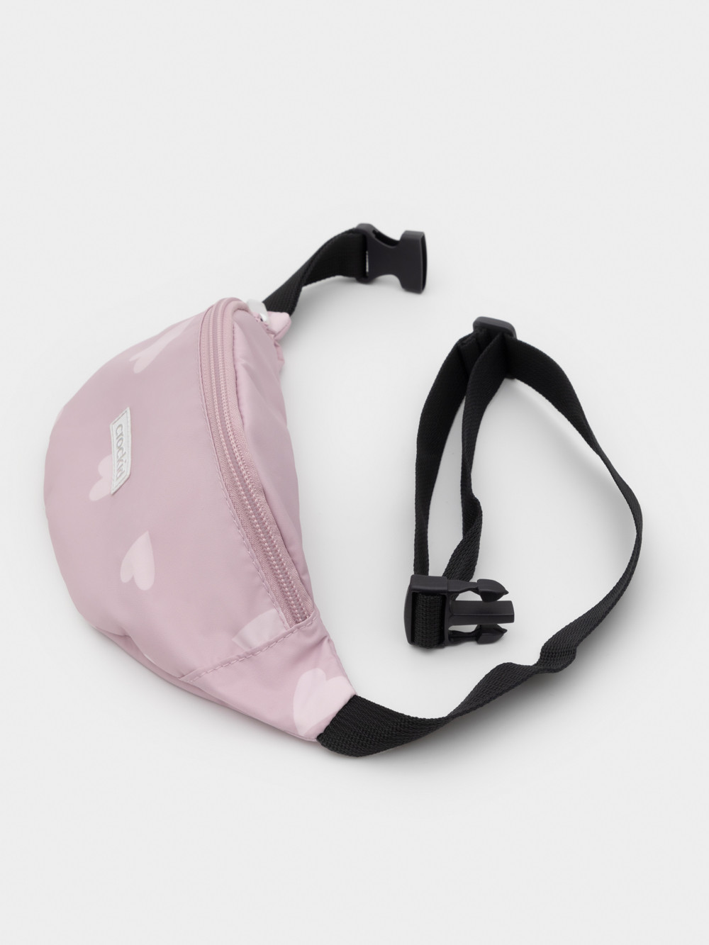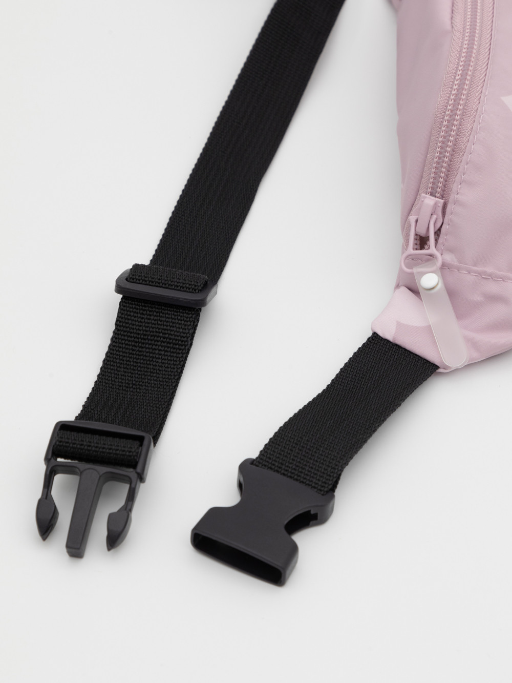 Детская сумка на ремне с набивным рисунком. Закрывается на молнию. Можно носить на поясе или на плече. Ремень застёгивается с помощью пряжки и регулируется по длине.  Светоотражающие элементы служат для дополнительной безопасности в тёмное время суток.