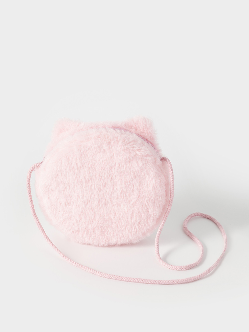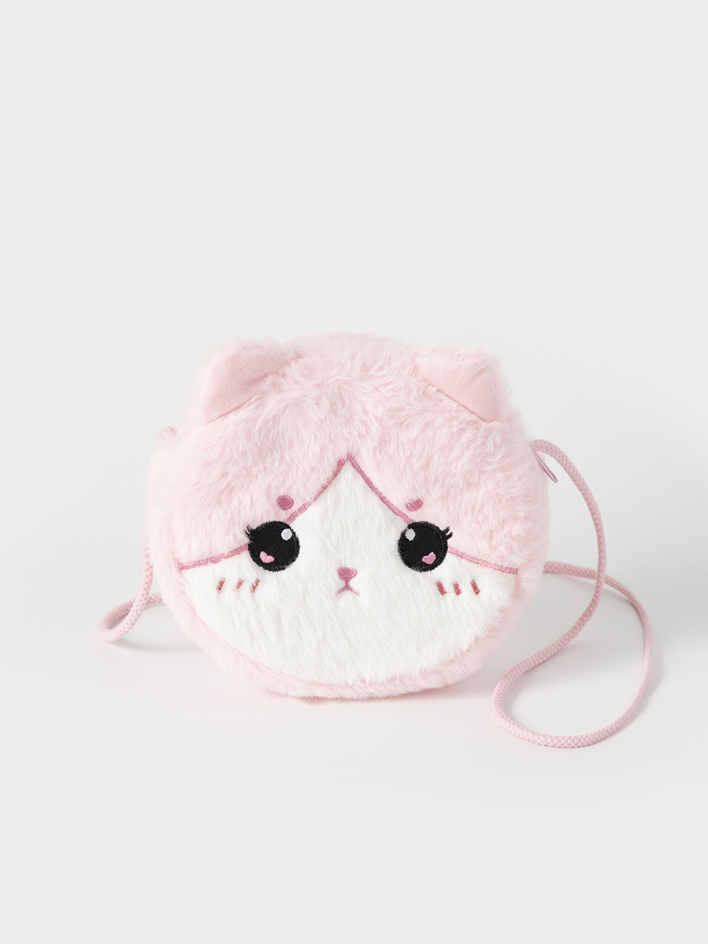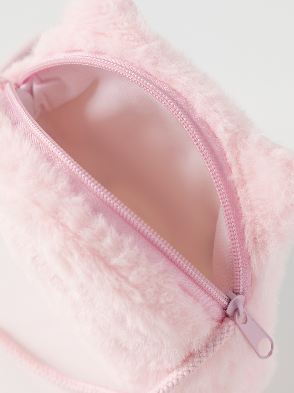 Маленькая круглая сумка для девочки. Закрывается на молнию. Украшена ушками и забавной мордочкой. Подойдёт для хранения бумажных денег и монет, заколочек, зеркальца и других мелочей.
