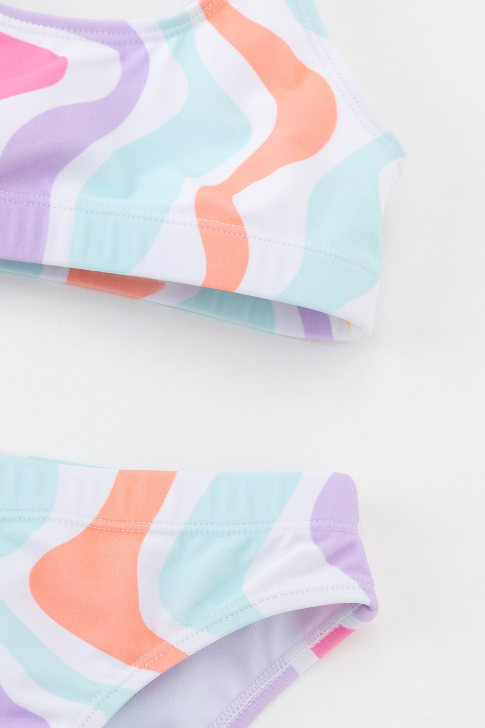 Раздельный купальник для девочки. Топ на эластичных лямках и плавки на резинке . Оригинальная набивка выполнена из стойких гипоаллергенных красителей.